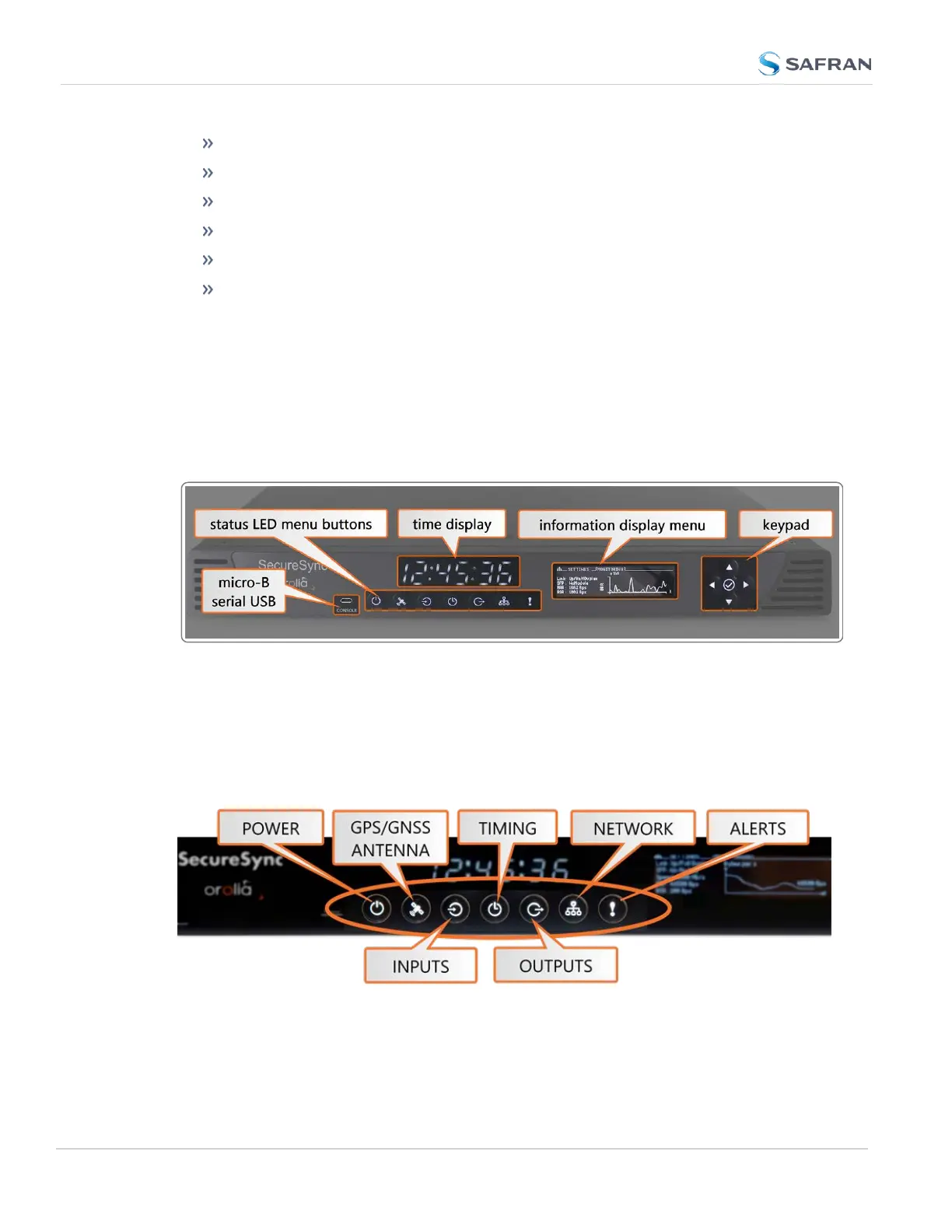 SecureSync's front panel status LEDs provide a real-time status overview: Seven