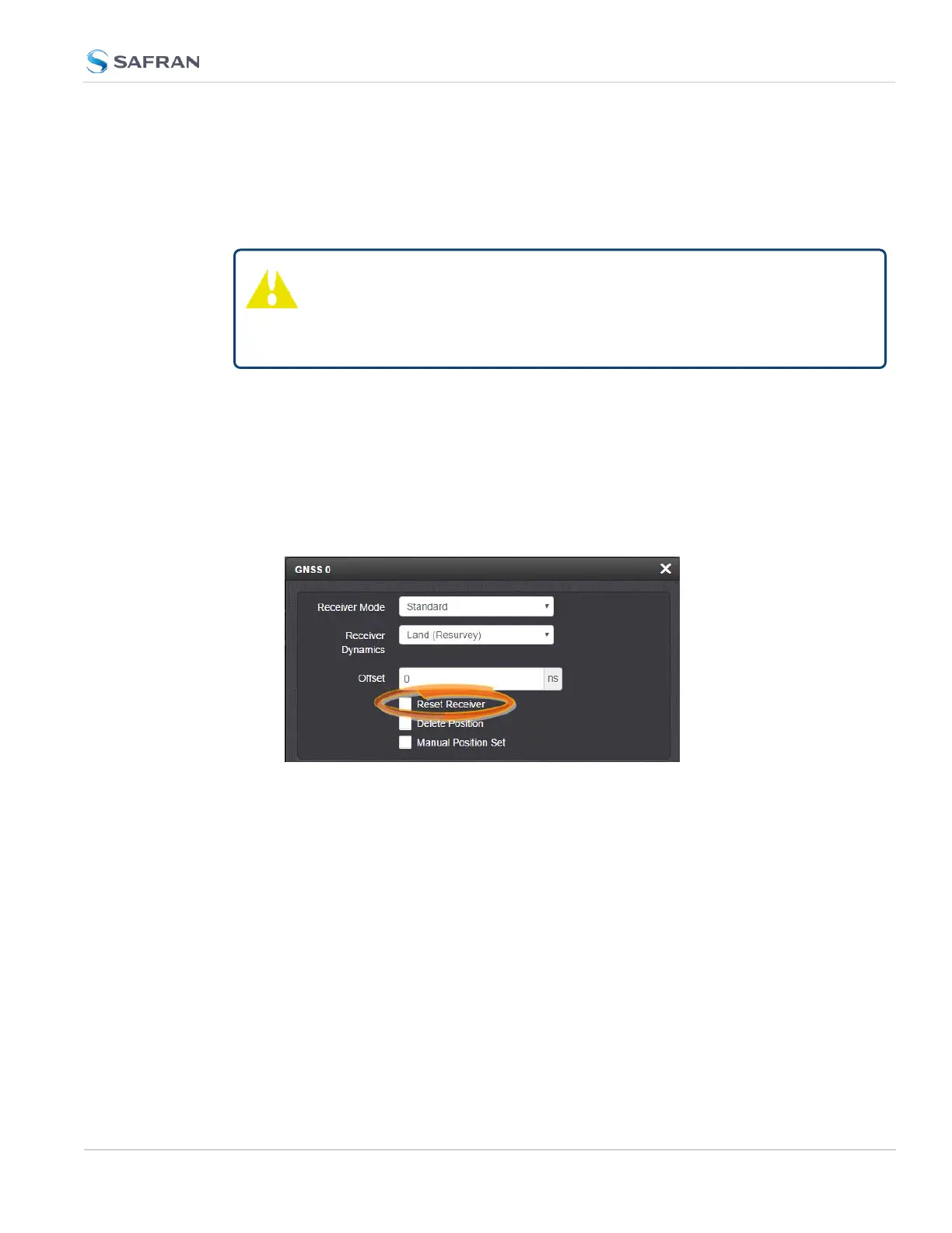 Caution: Resetting the GNSS receiver may become necessary in the
