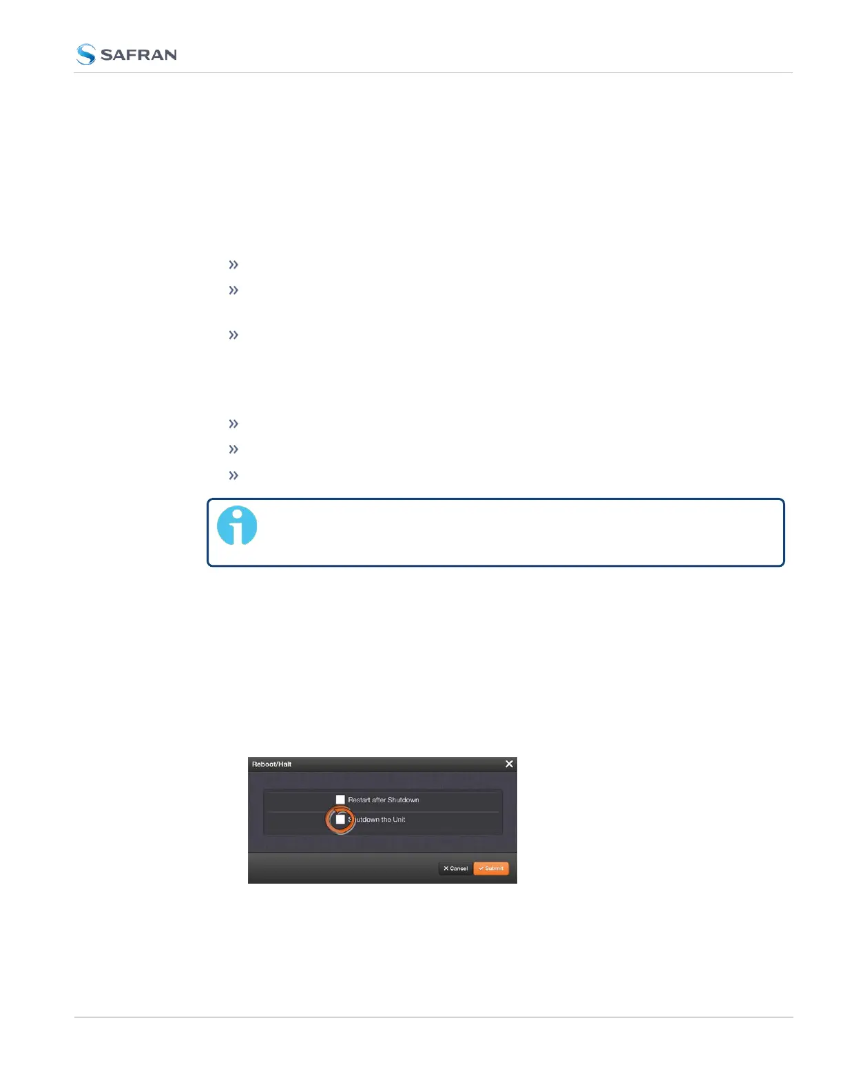The Reboot/Halt window will display. Select the Shutdown the Unit check-
