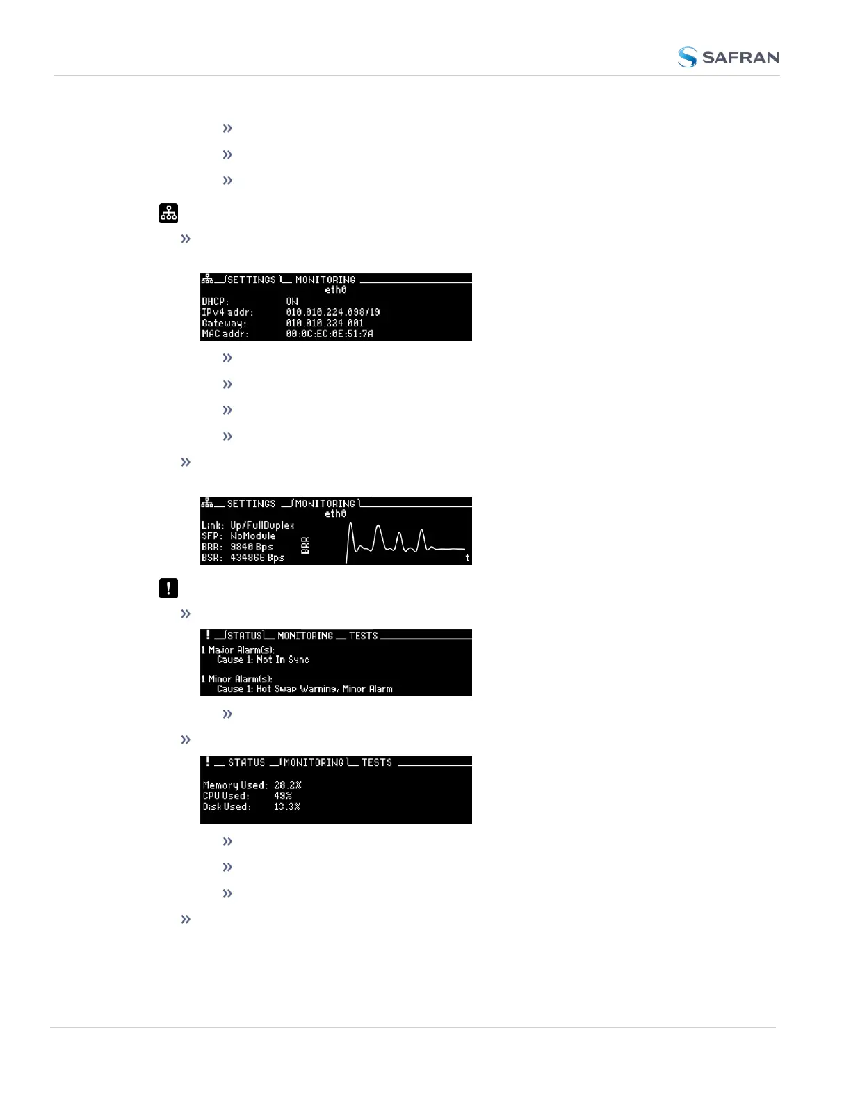 show current major or minor alarms and descriptions