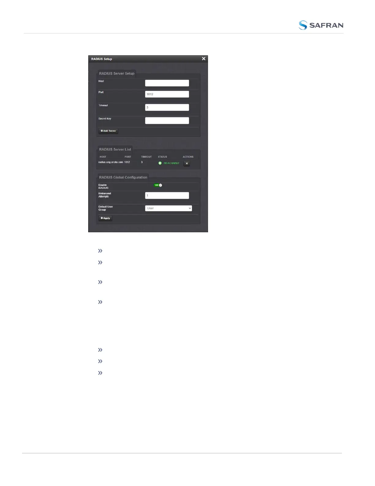 To remove a RADIUS server from the list, click the X-button in the Actions