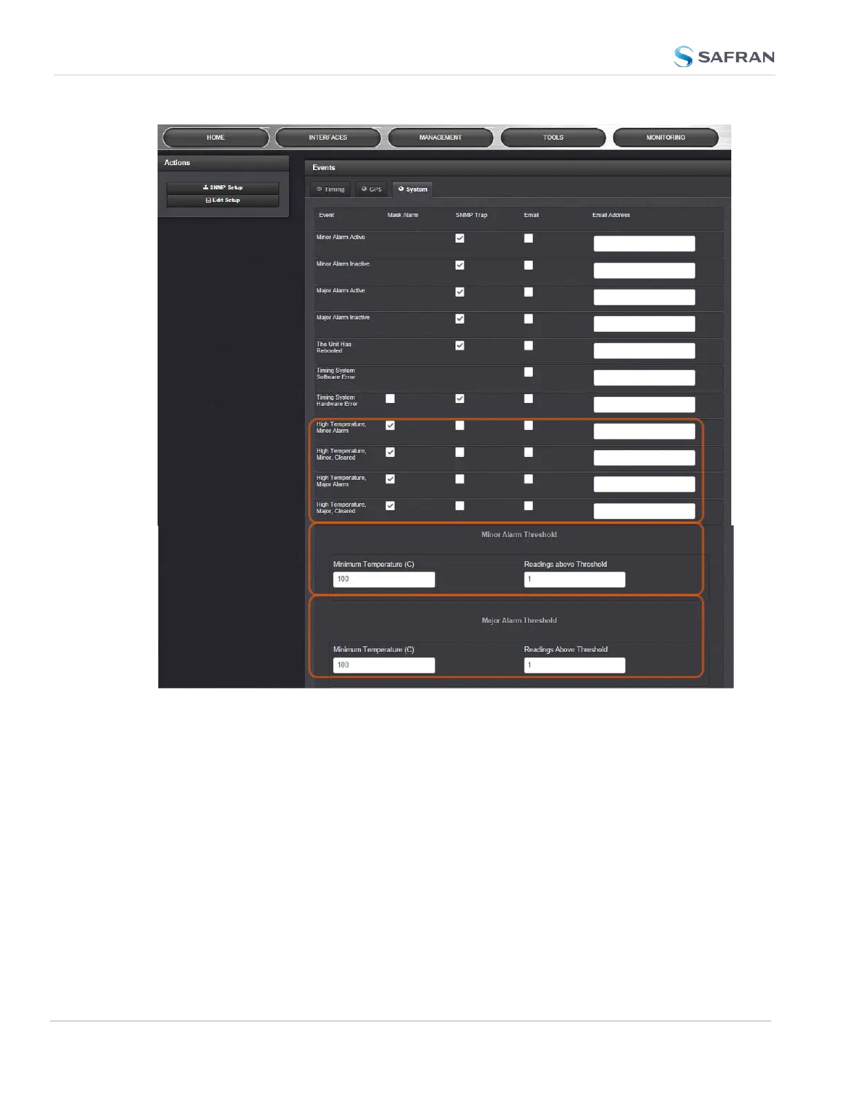 Also, you can set the temperature threshold value for Minor/Major alarms, and