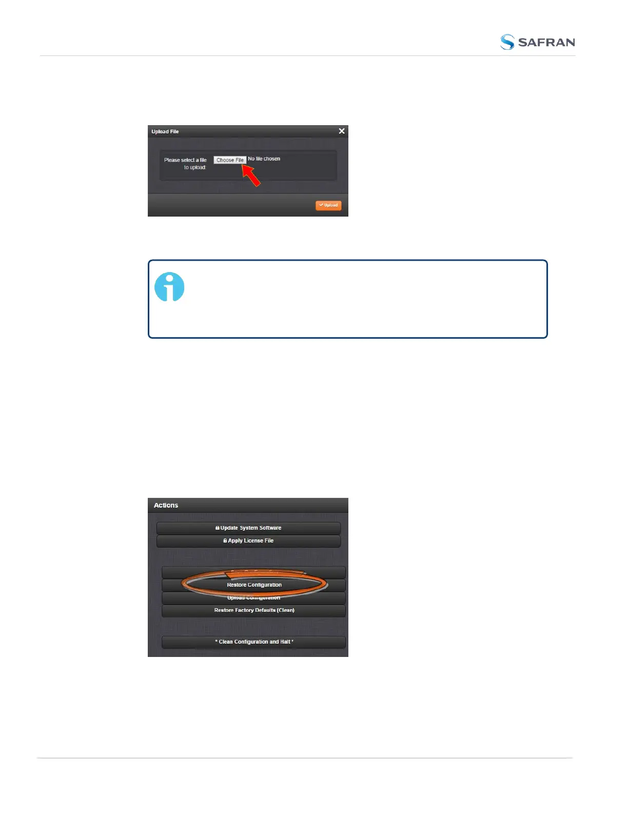 To use the new configuration file for this SecureSync, click the Restore Con-