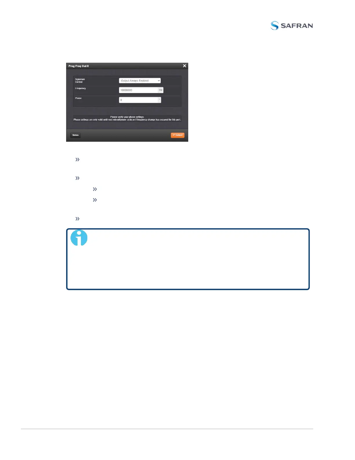 Programmable Frequency Output: Status Window