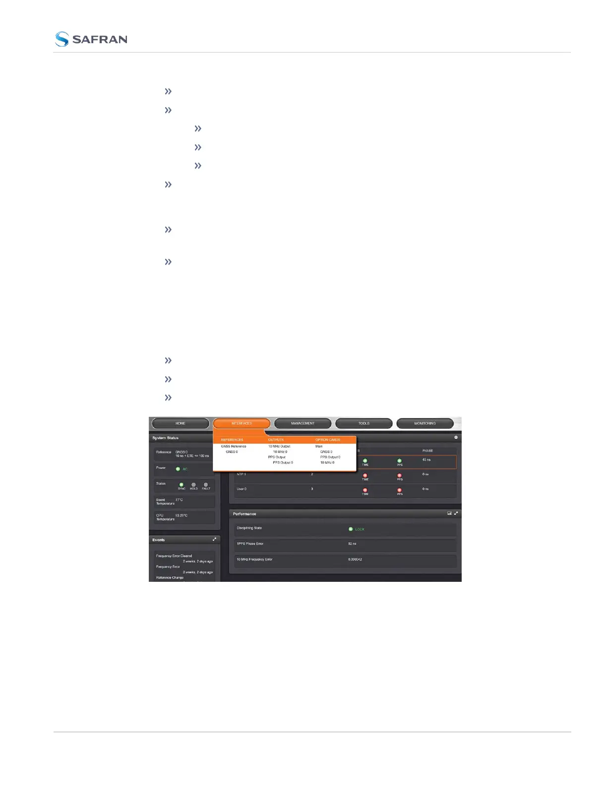 The INTERFACES menu on the Main screen provides access to SecureSync's: