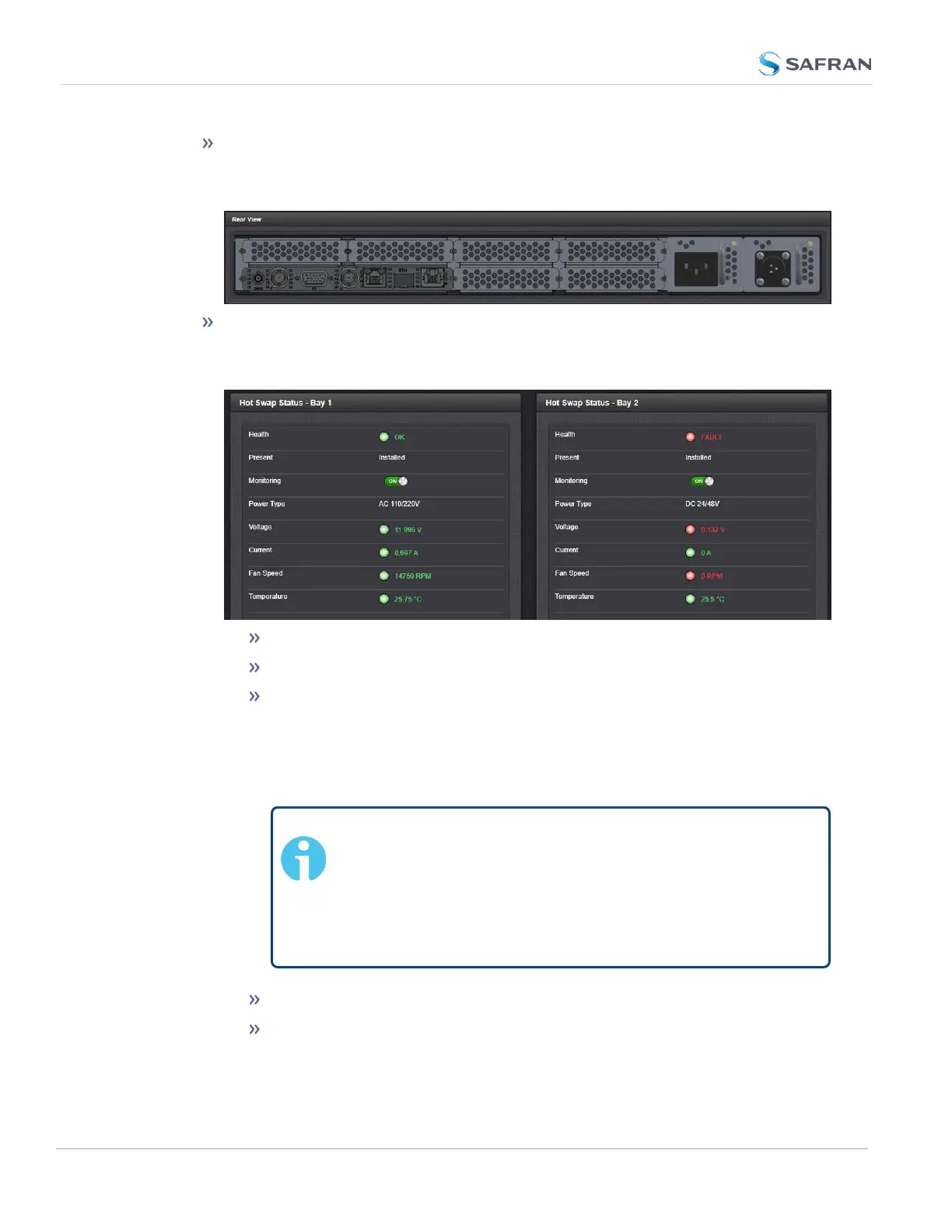 The Rear View panel of the Hot Swap page will display a rendering of the