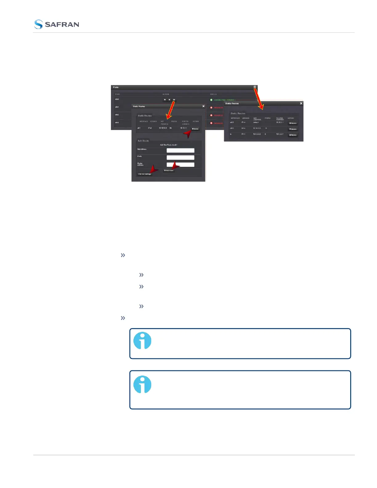 4. To add a new Route, view or delete an existing Route for a specific Ethernet