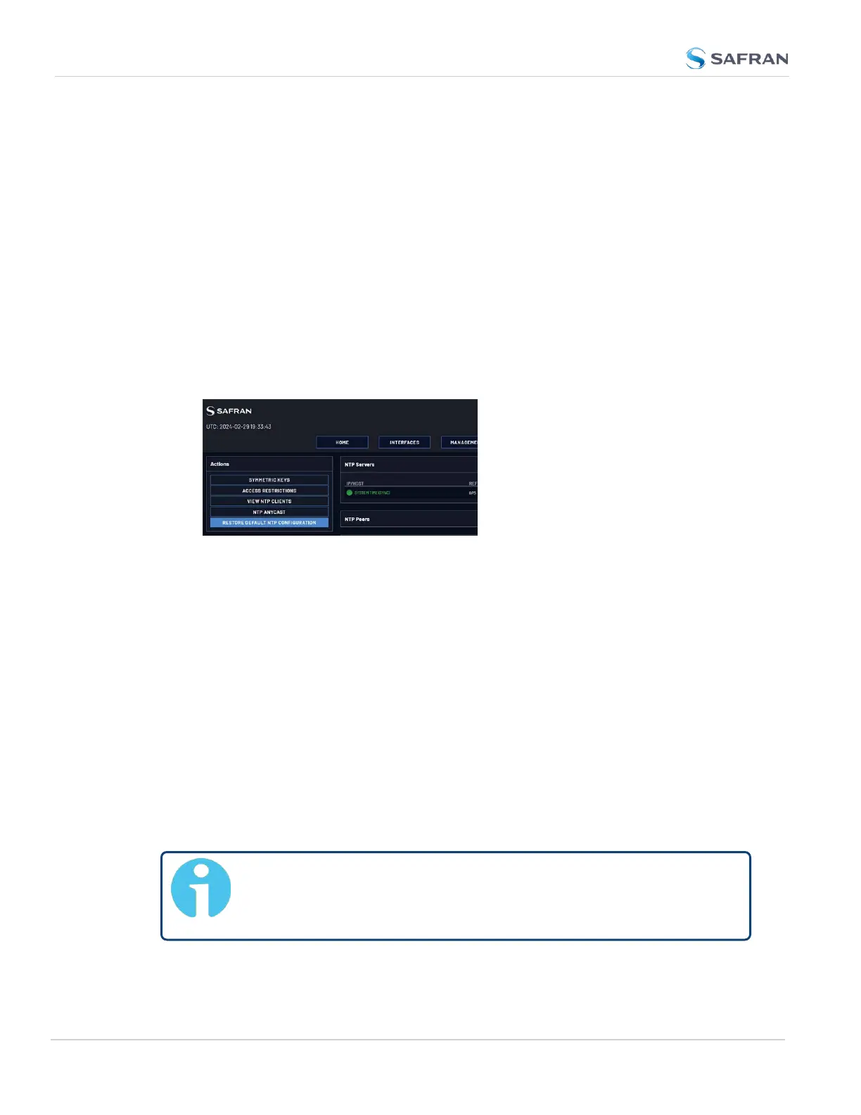 The VersaSync default NTP configuration can be restored at any time. It com-