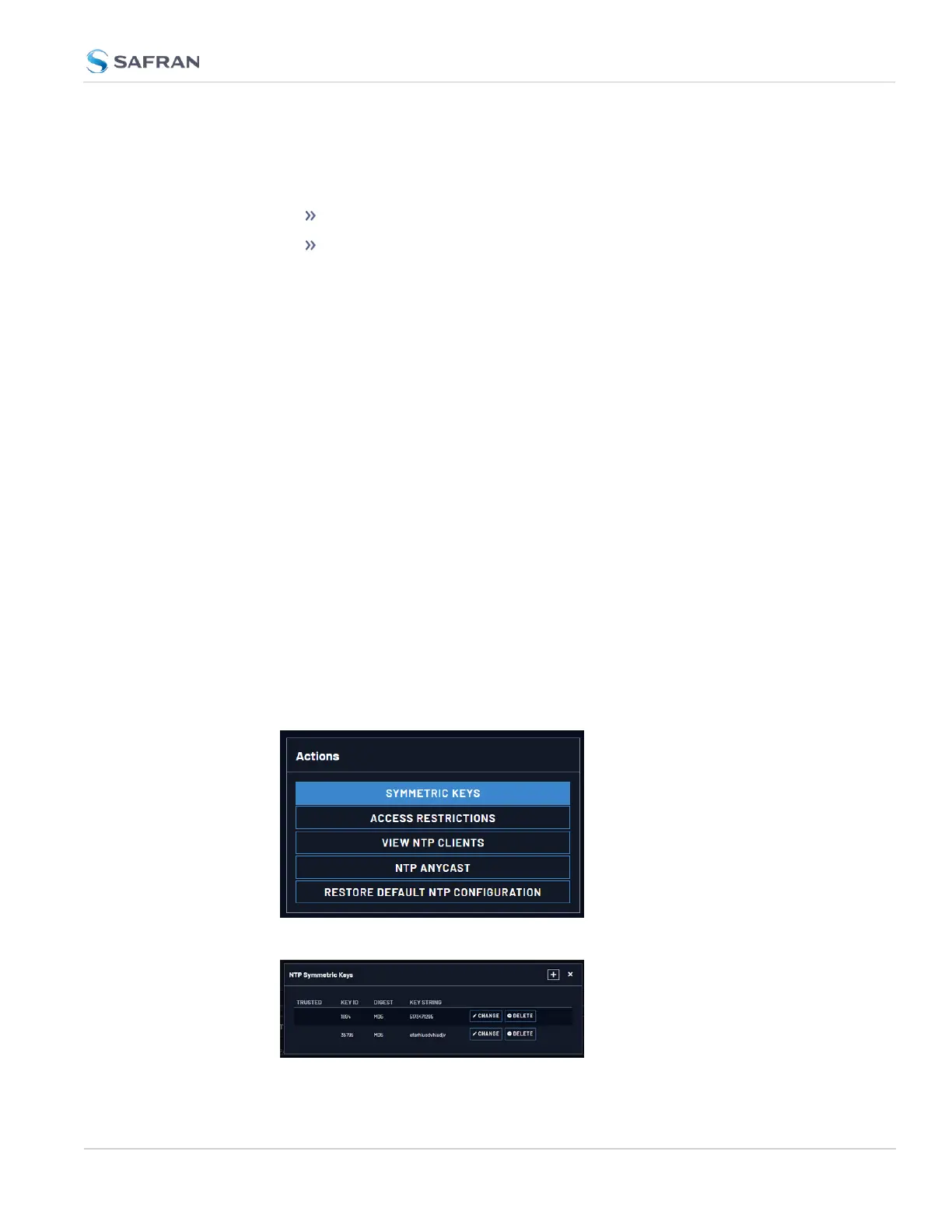 Symmetric Keys tab allows NTP to be configured to use MD5 authentication.