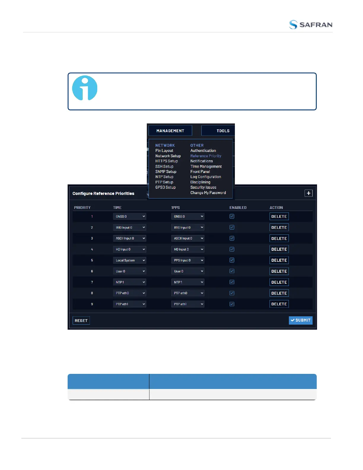 Each available type of Time and 1PPS input reference is assigned a human-read-