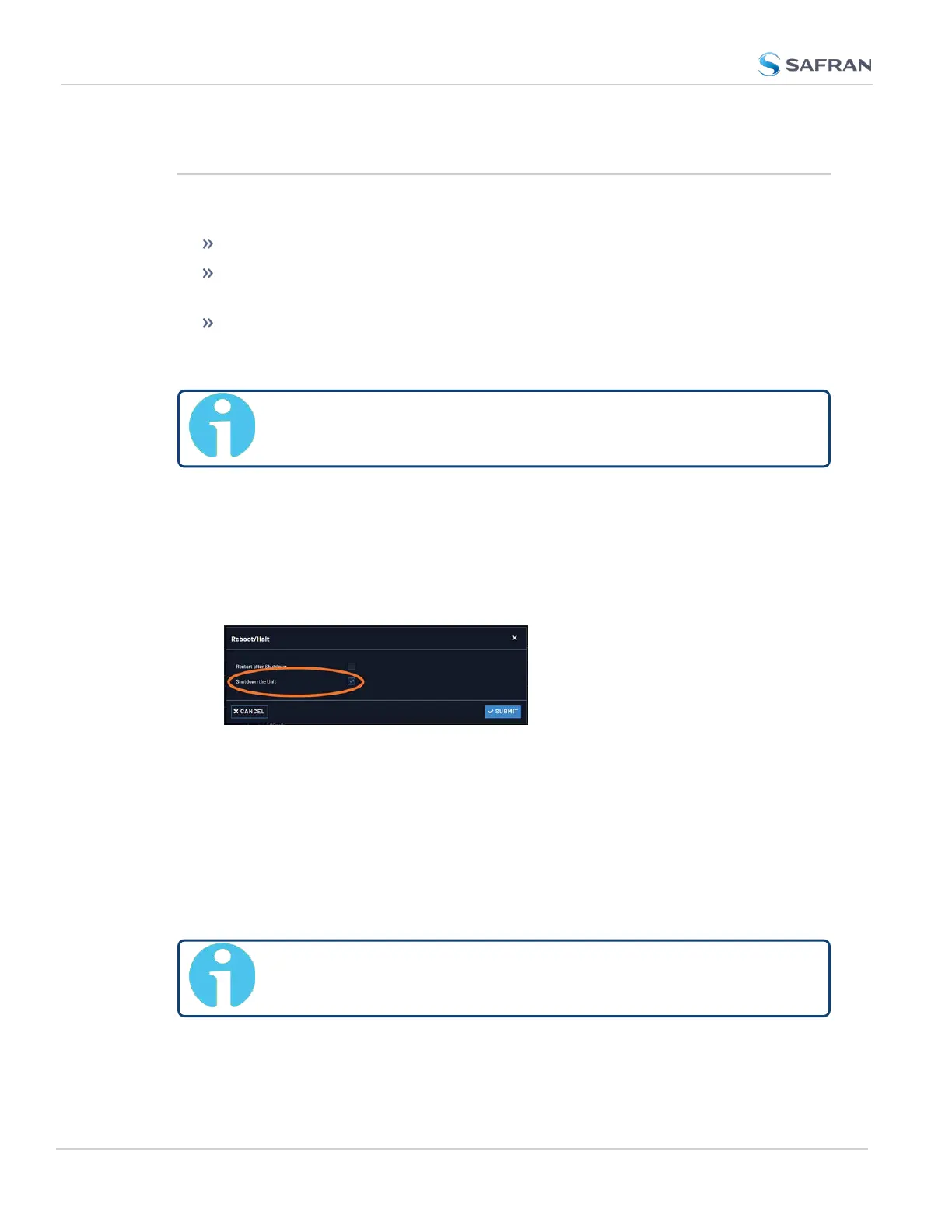 2. The Reboot/Halt window will display. Select the Shutdown the Unit check-