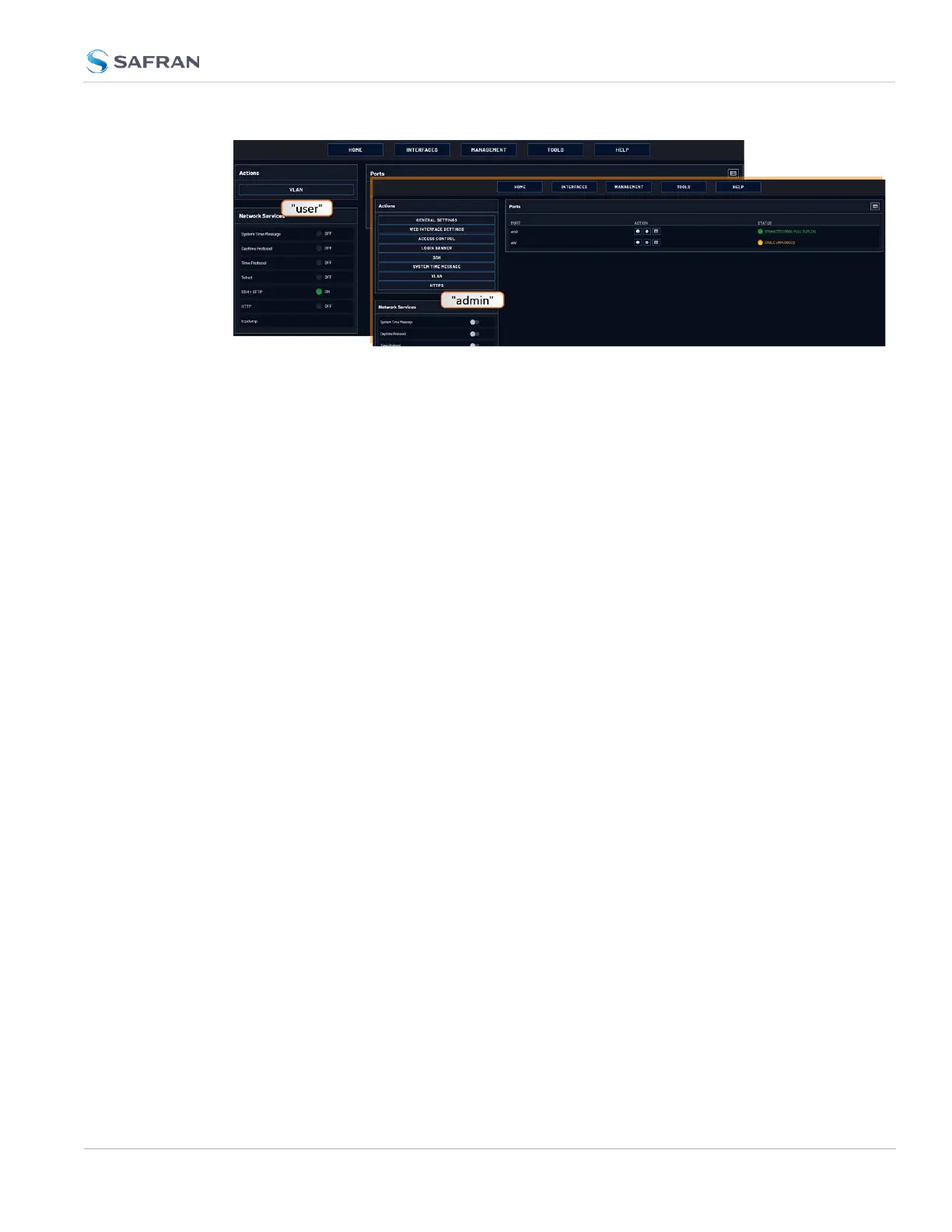 "user" and "admin" accounts can view and modify all settings in these pages (can