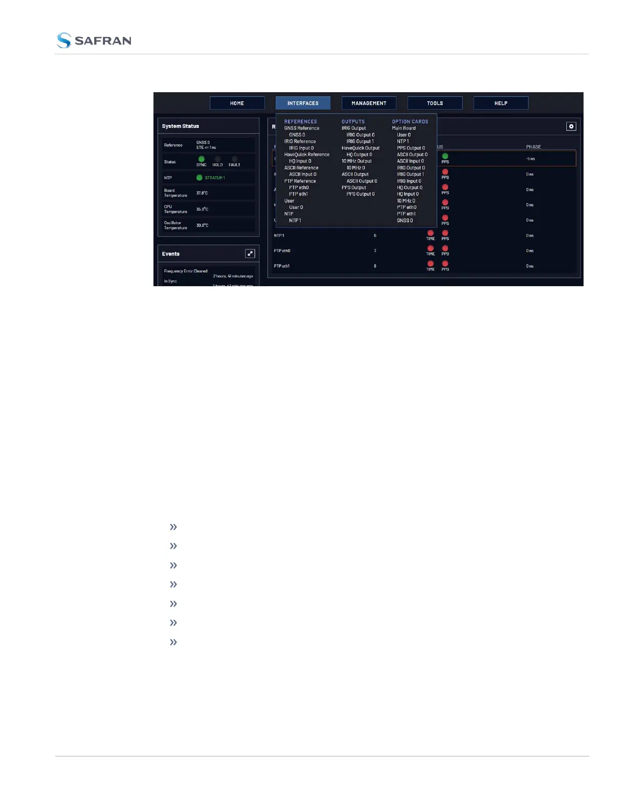 The headings of each of the INTERFACES drop-down menus (white on orange)