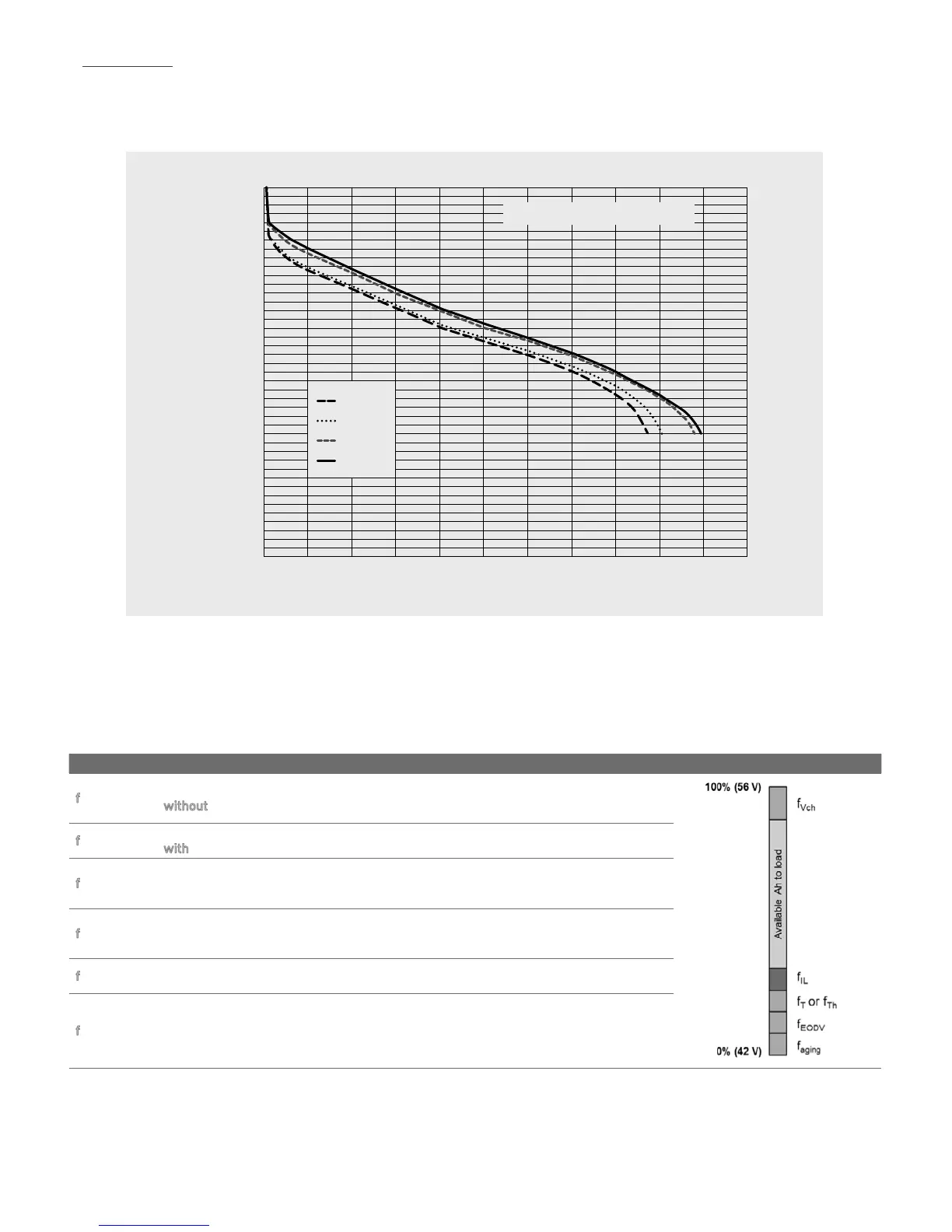 hour discharge rate for 8 hours of runtime to a 42 Vdc cut-off. When conditions deviate from this, the available capacity on discharge is