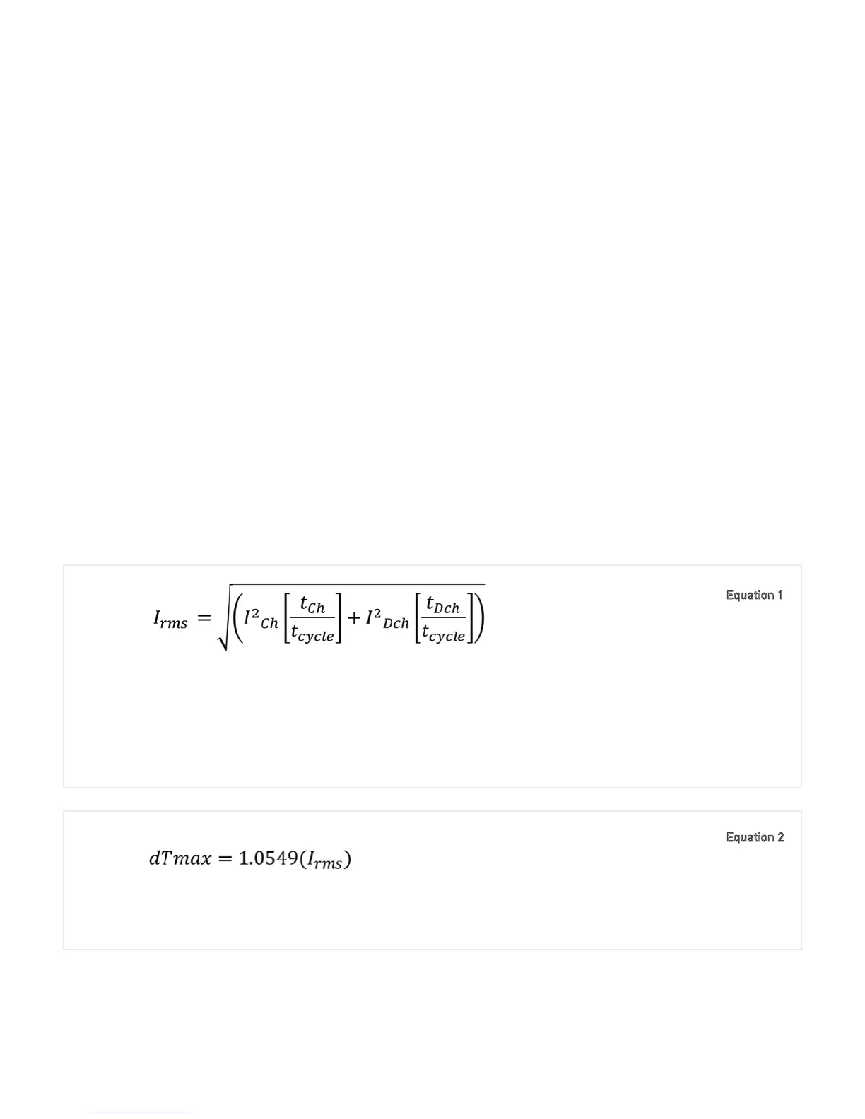 weighted average current for one cycle (result used to input to dTmax equation below)