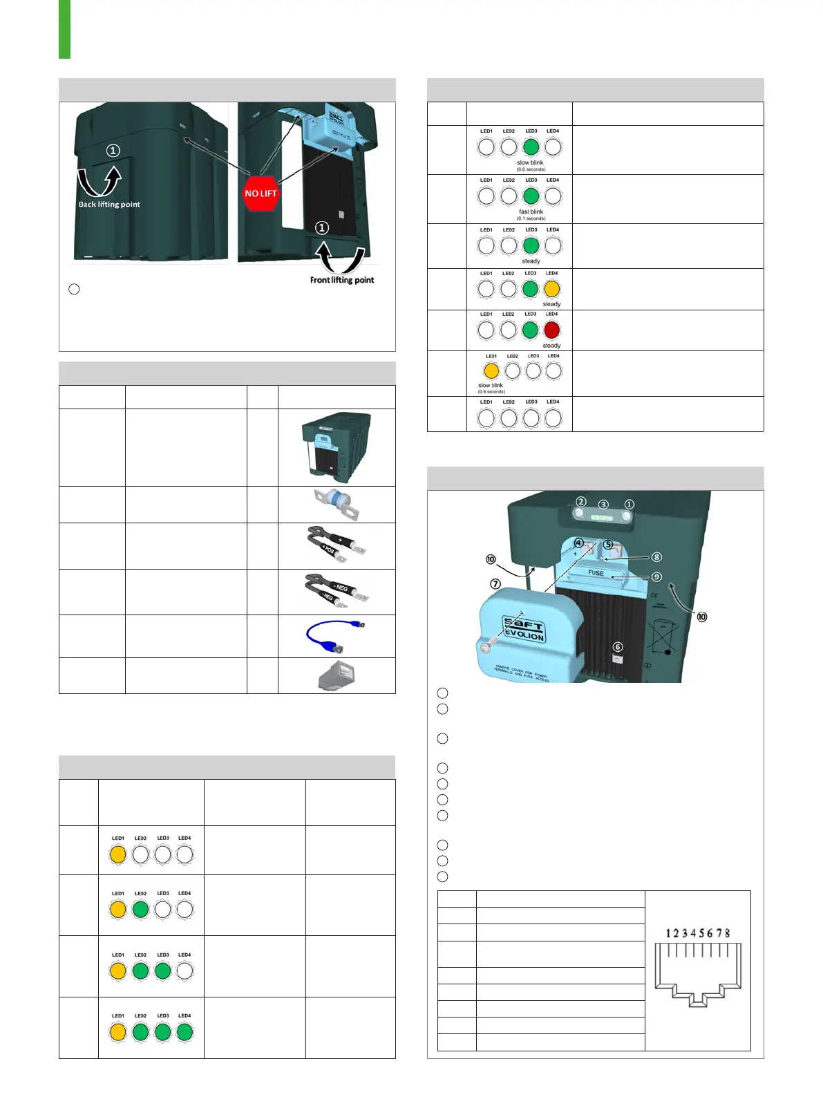 LED1 (left), LED2, LED3 and LED4 (right), see Table 2