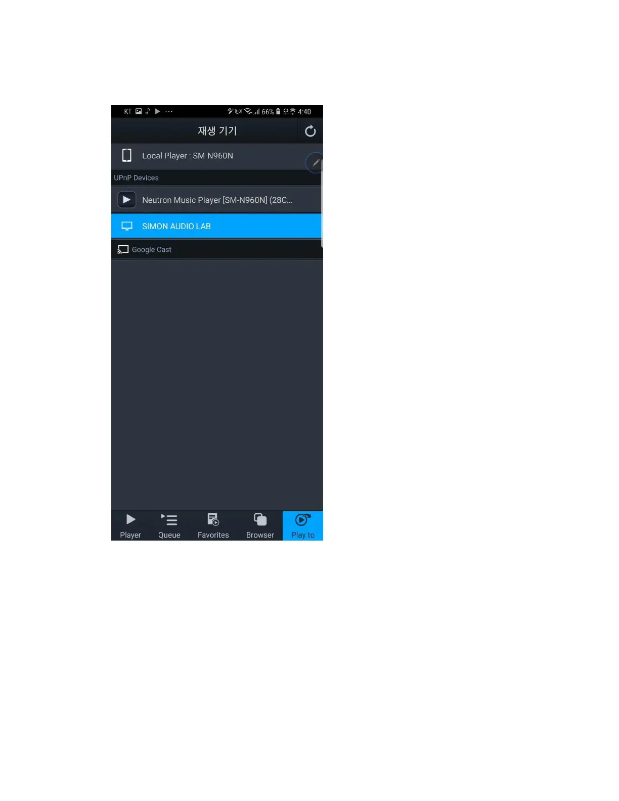 - Touch ‘Play to’ button on the right low corner to choose which Device you want
