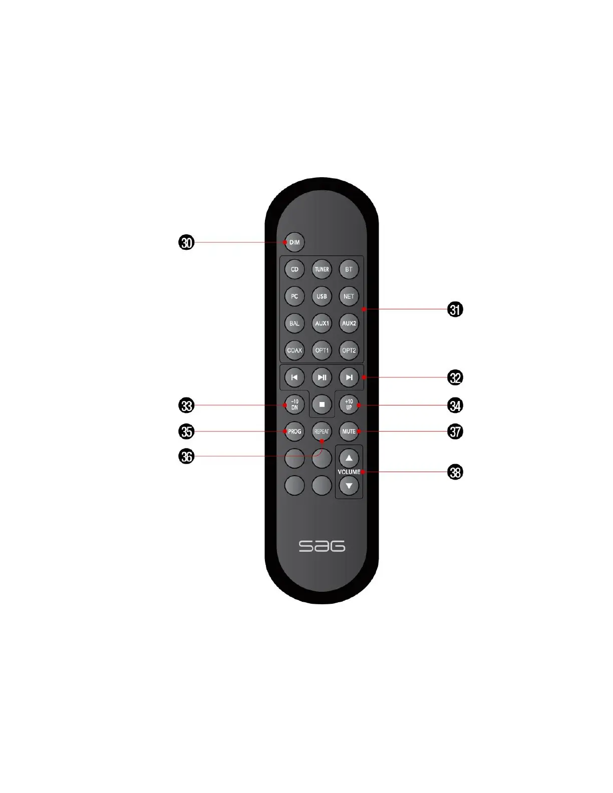 SAG AIO - Remote Control Layout; Remote Control Button Identification