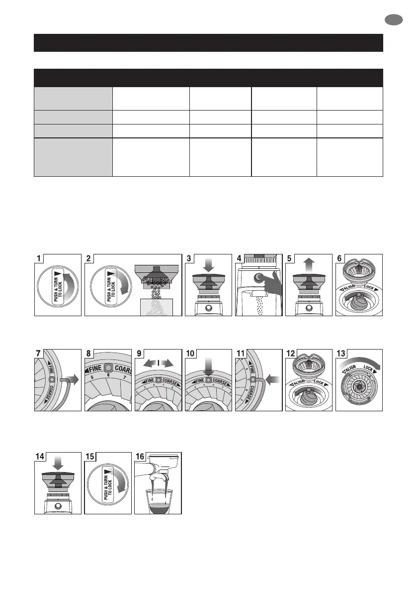 *Denna kaetabell bör användas som utgångspunkt för att justera malningstid och/eller storlek, eftersom båda kan variera