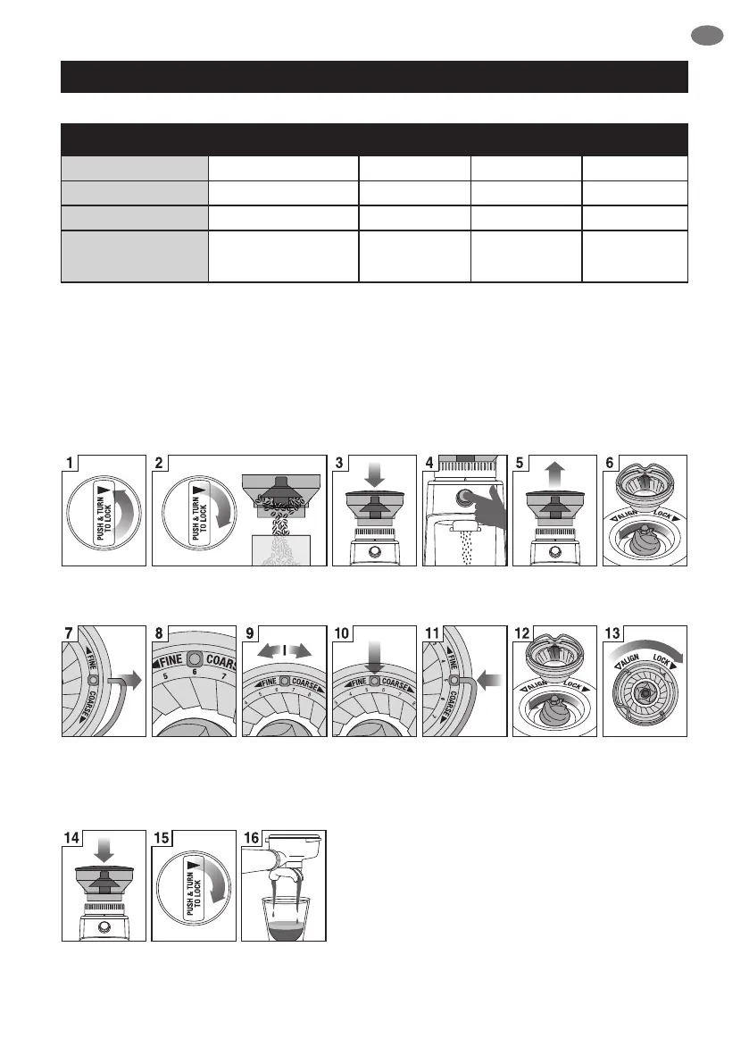 *Tätä kahvitaulukkoa tulee pitää aloitusohjeena jauhatusajan ja/tai -karkeuden säätämisessä, koska kummatkin arvot