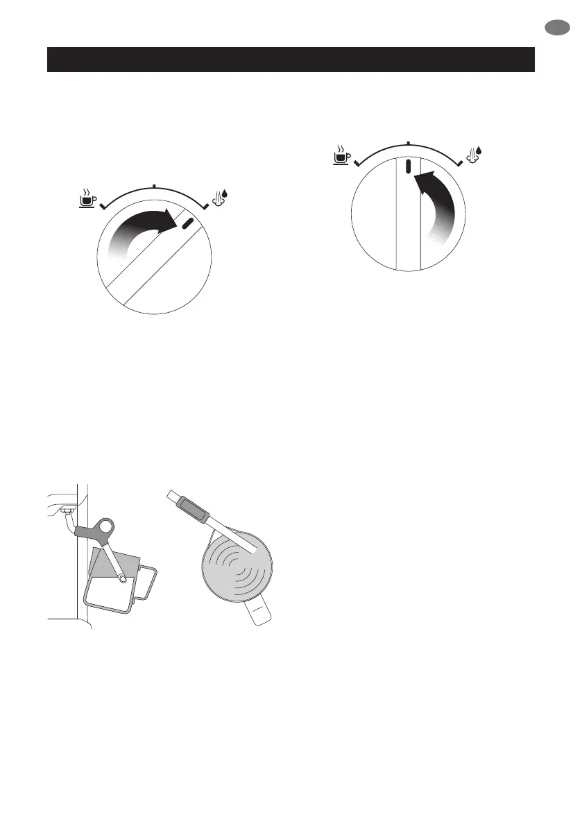 • Before inserting the steam wand into the milk,