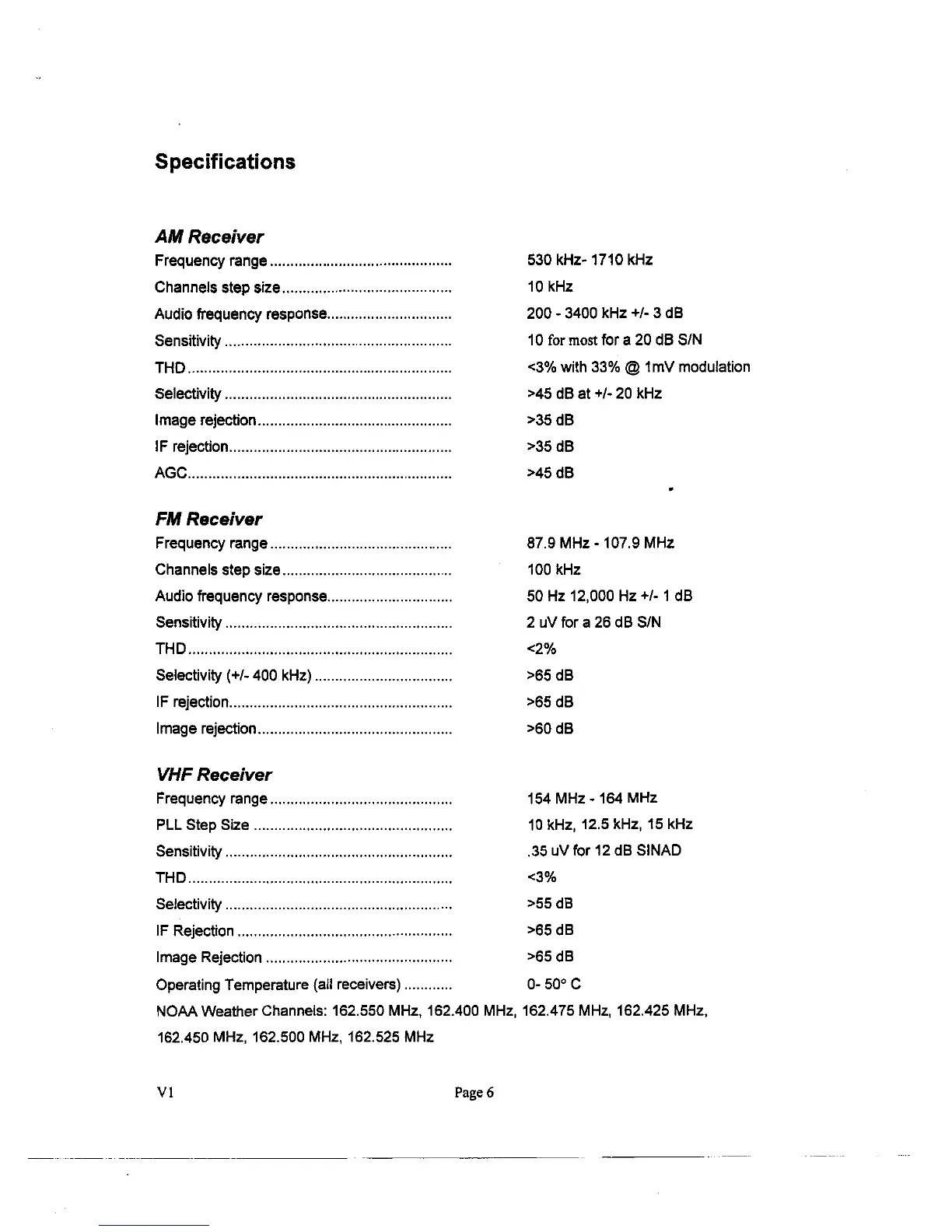 Sage ENDEC - Technical Specifications; Receiver Specifications