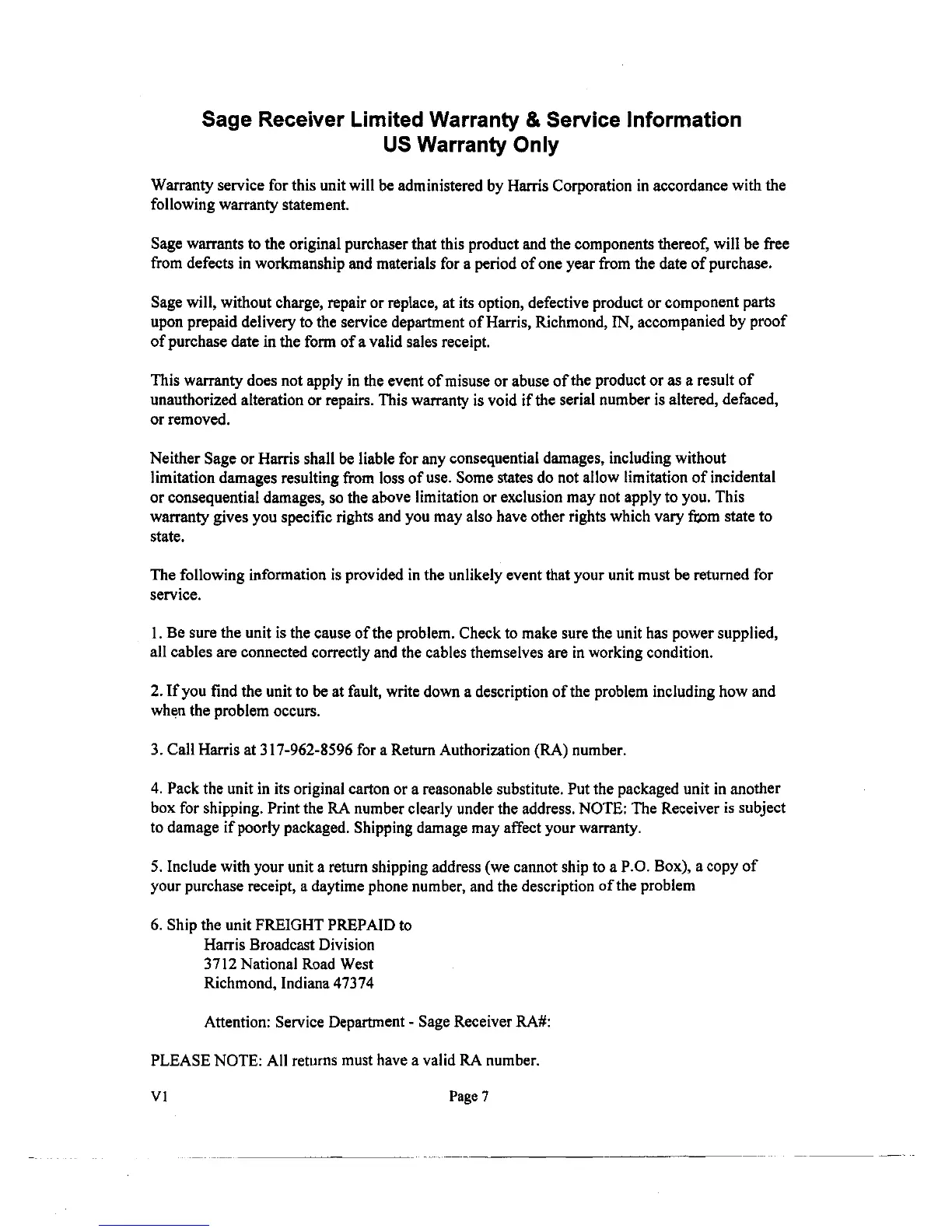 Sage ENDEC - Warranty and Service Information; Warranty Details; Service and Return Procedures