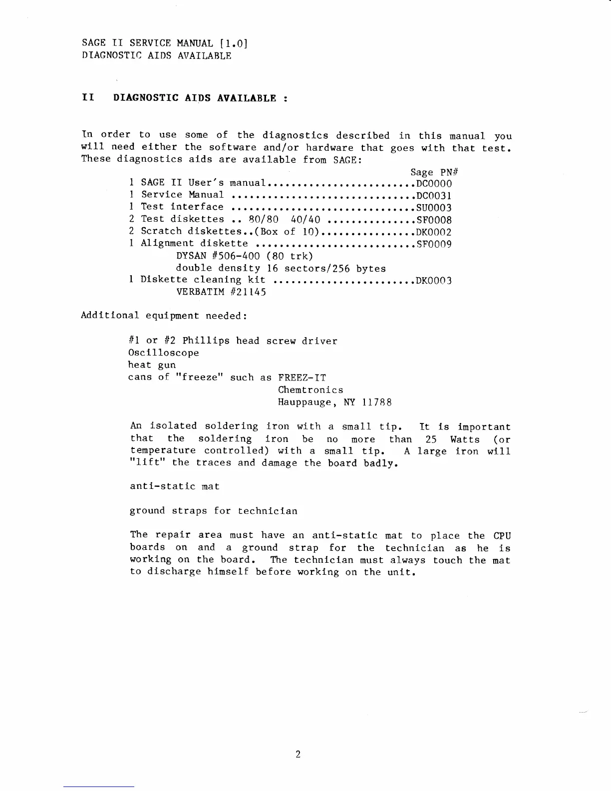 Sage II - Diagnostic Aids Available; Diagnostic Software and Aids; Required Tools and Safety Equipment