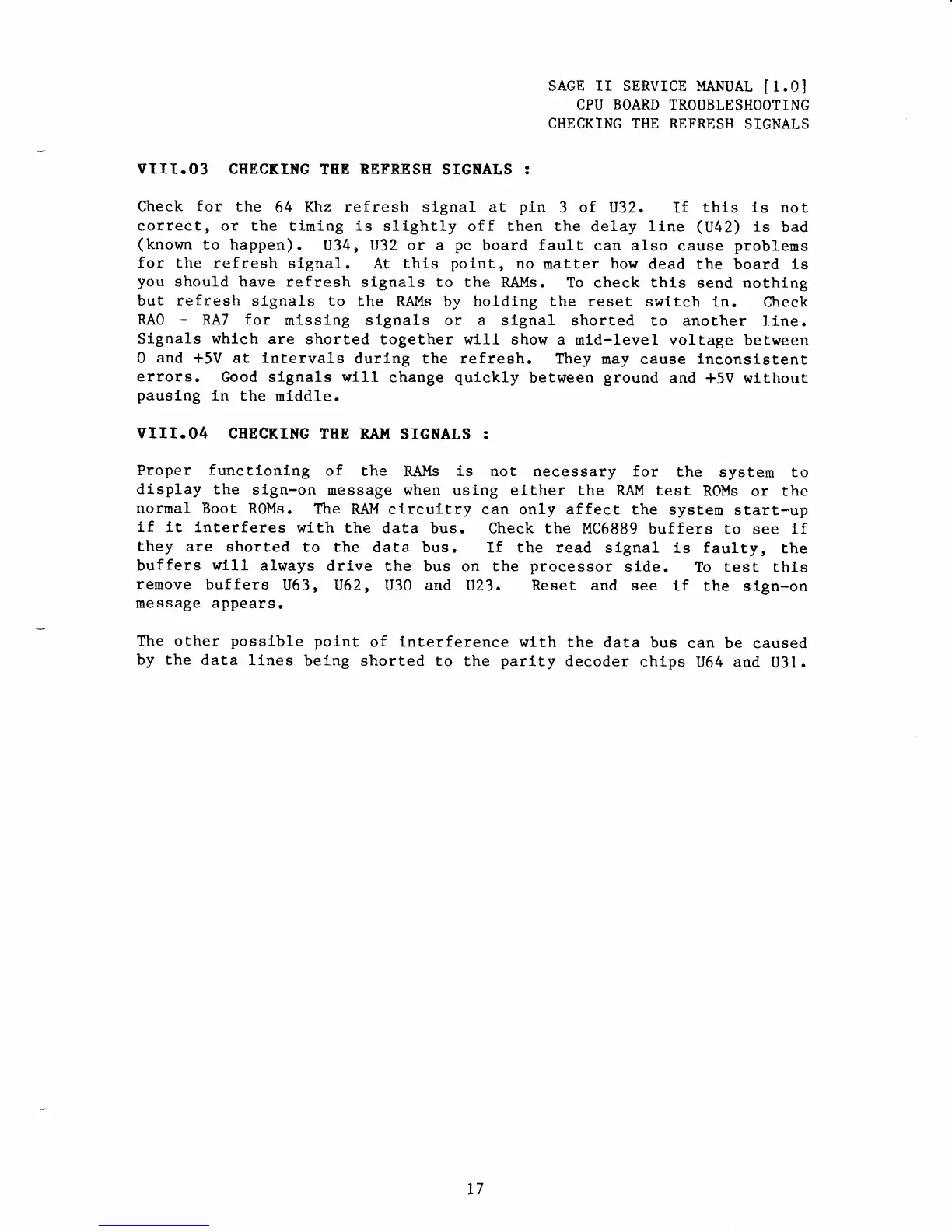 Sage II - Checking the Refresh Signals; Checking the RAM Signals
