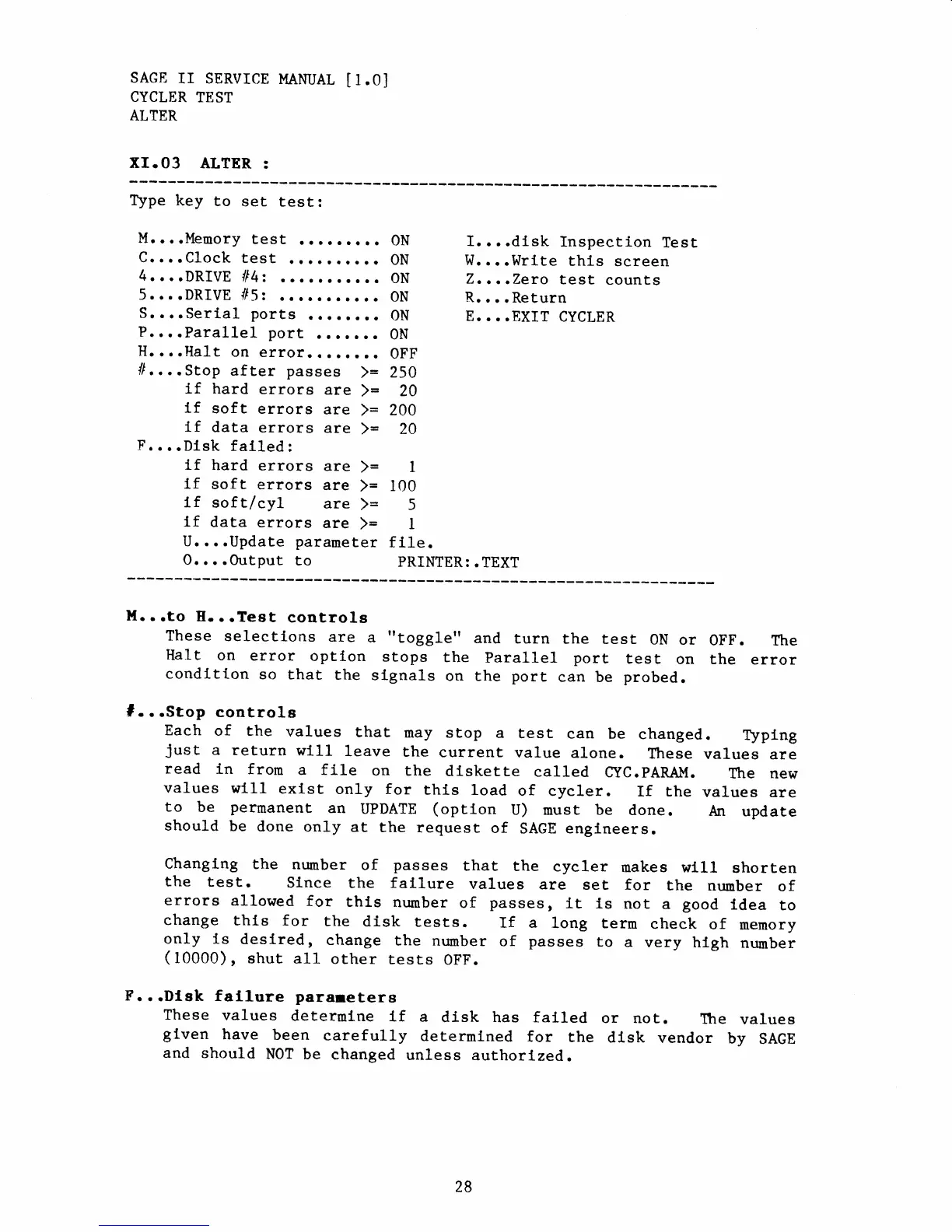 Sage II - Disk Strap Test; Switch Test; Attach Test; Real Time Test