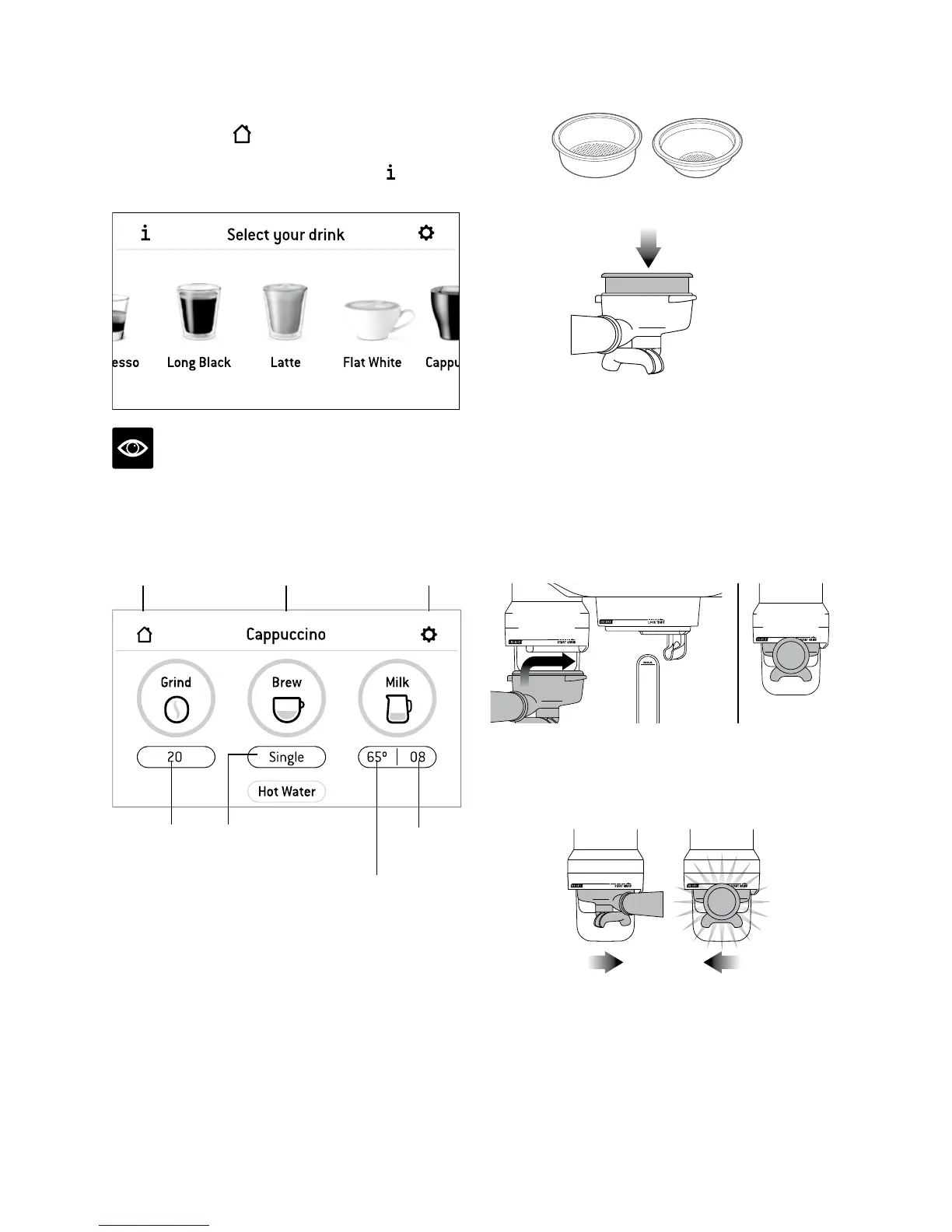 ausrichten. Siebträger durch Anheben in die
