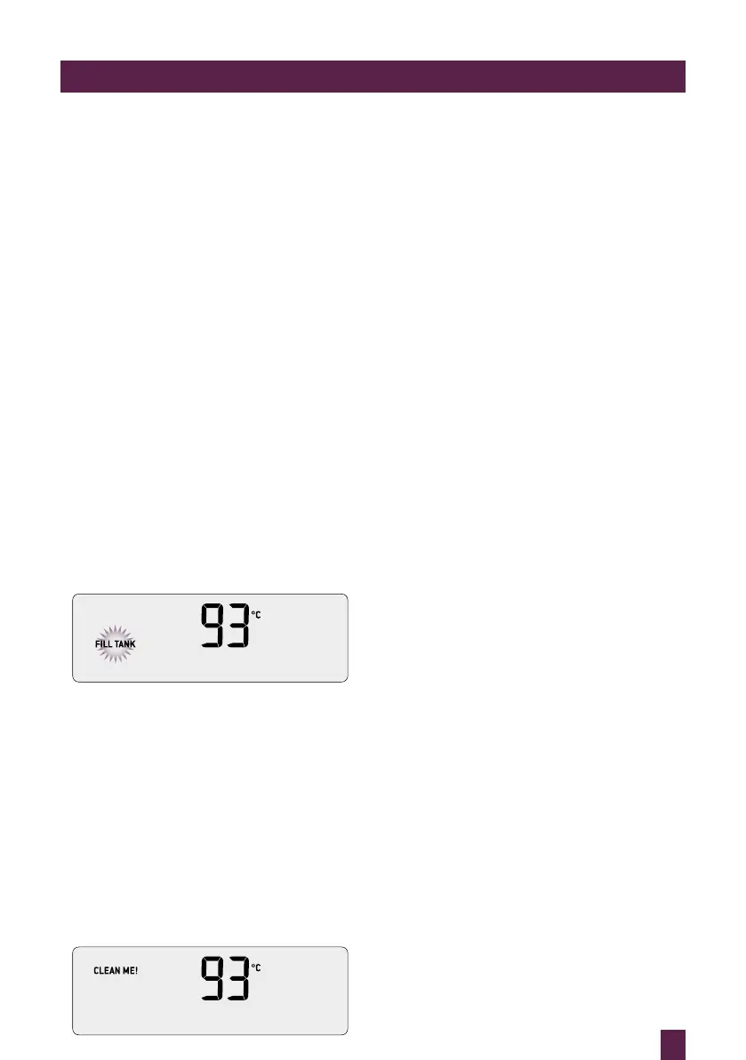 The LCD will display 'FILL TANK'.