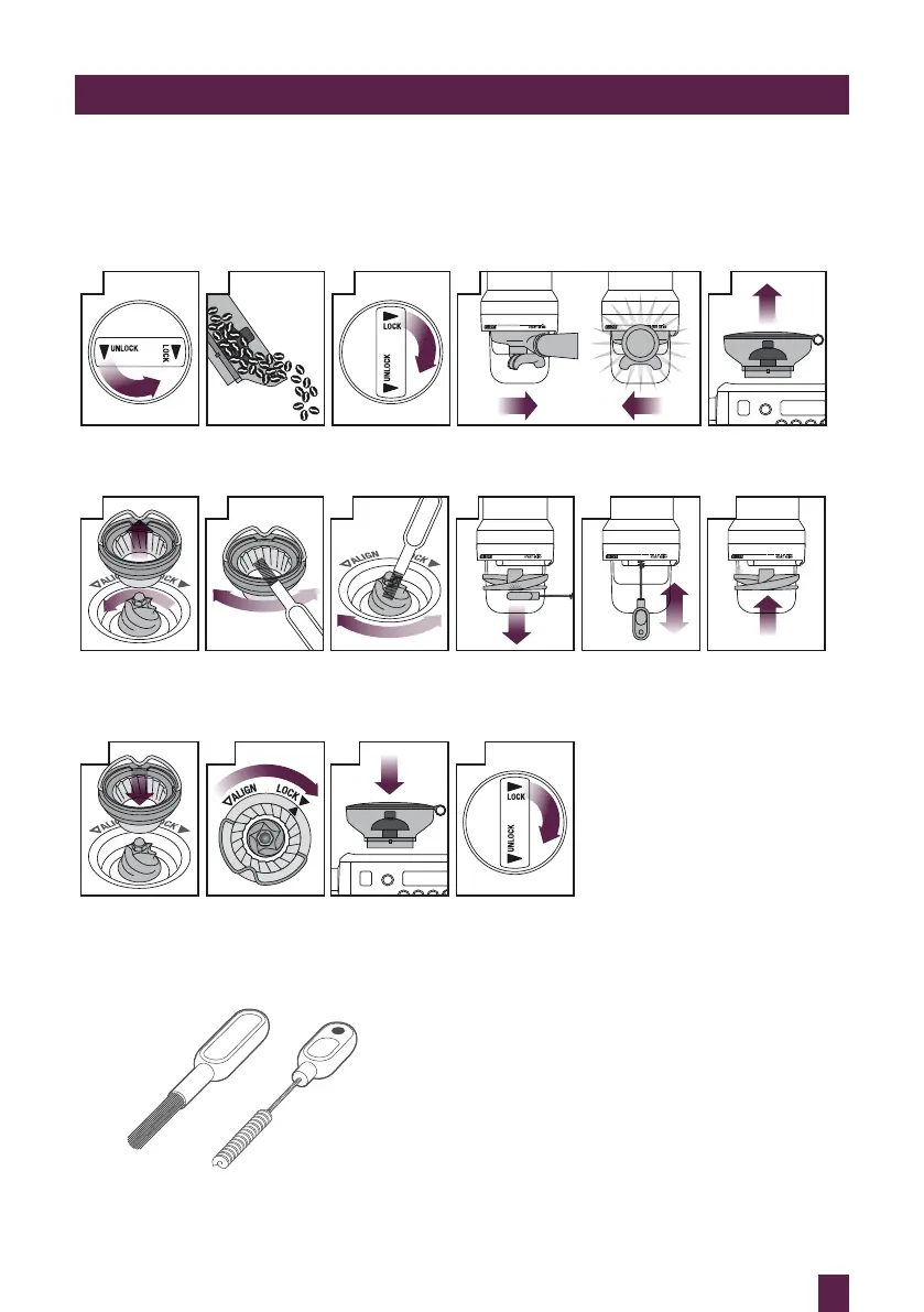 Remove beans Run grinder until empty Unlock & remove
