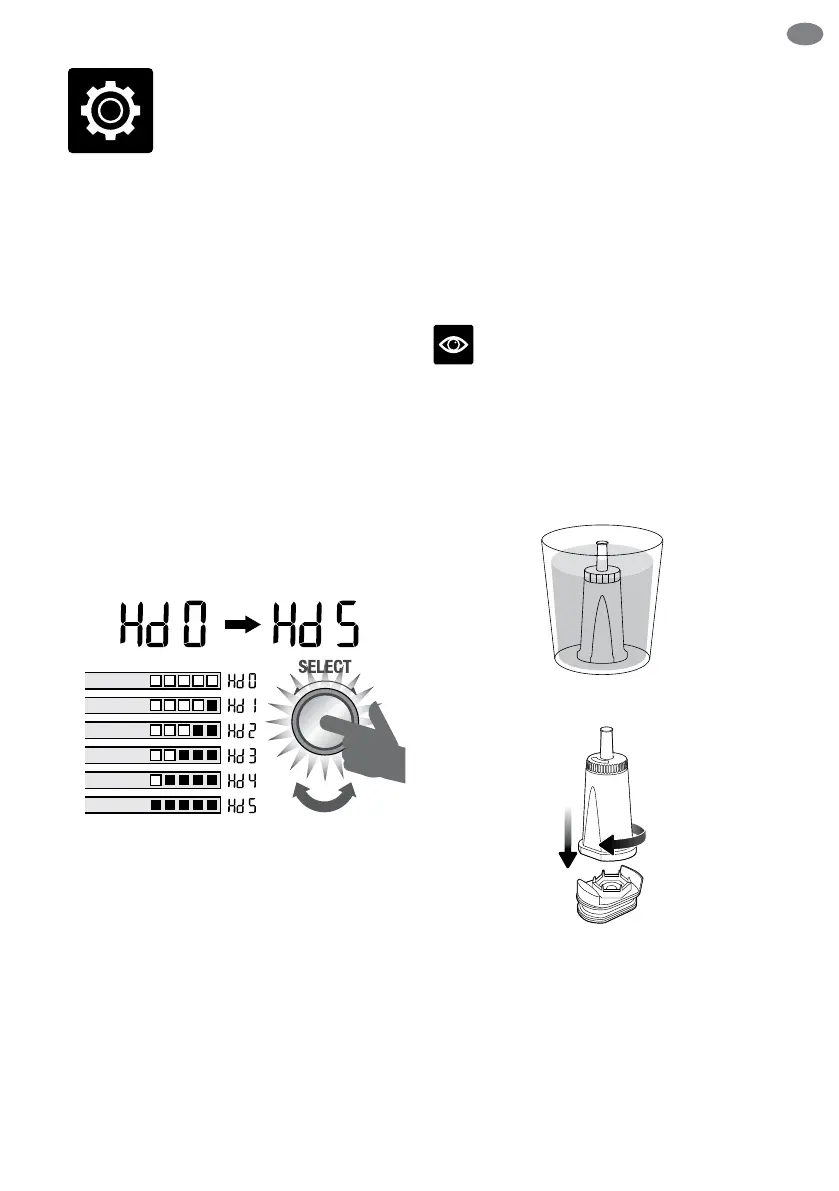 het LCD‑scherm, nu kunt u de waterhardheid