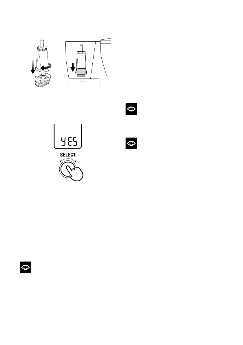DESCALE. Druk op de SELECT‑knop om de
