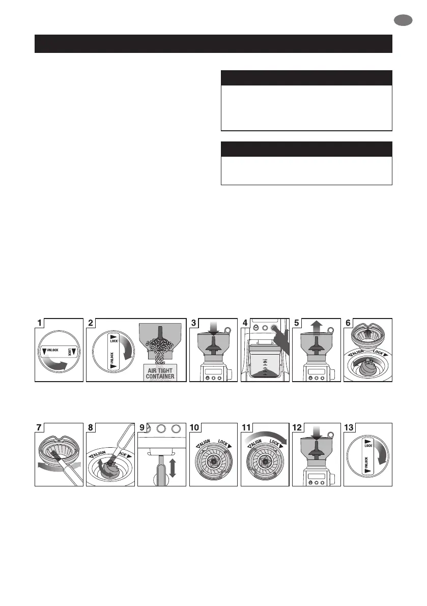 1. Bohnenbehälter leeren und nicht