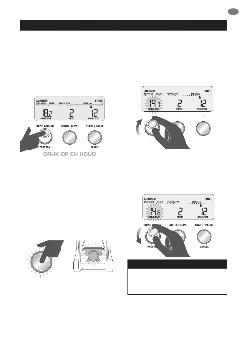 koe wilt verhogen, draait u de GRIND AMOUNT-