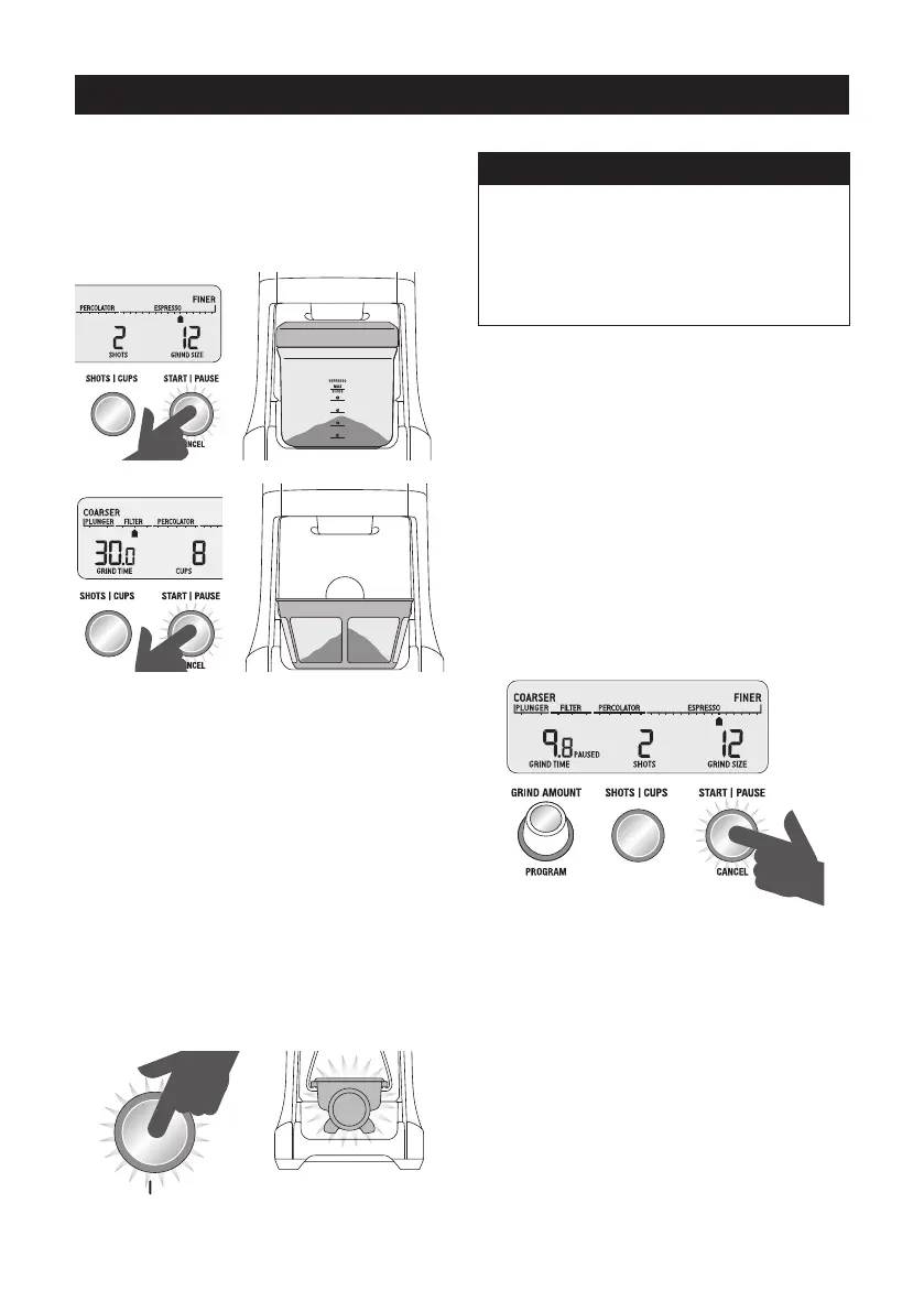 PAUSE / CANCEL per avviare la macinatura.