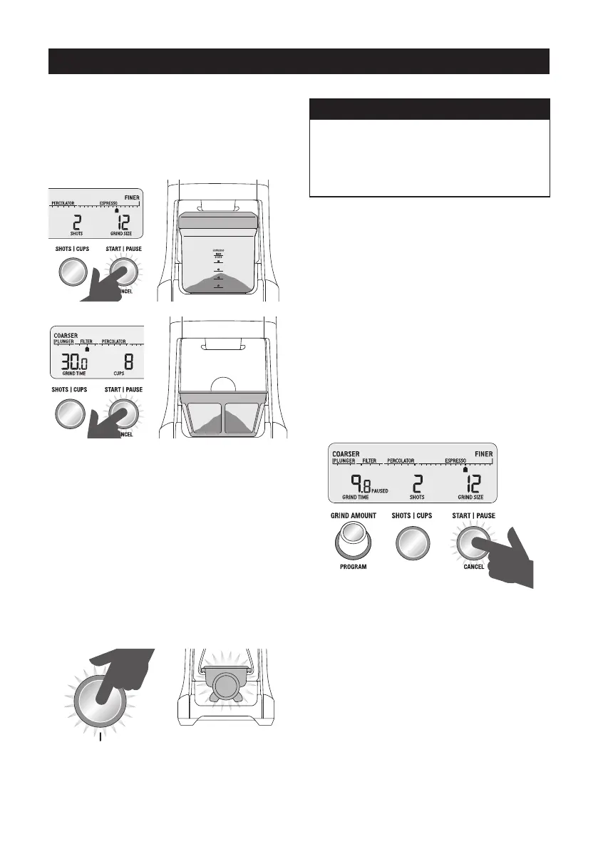 • Durante a moagem, prima o botão