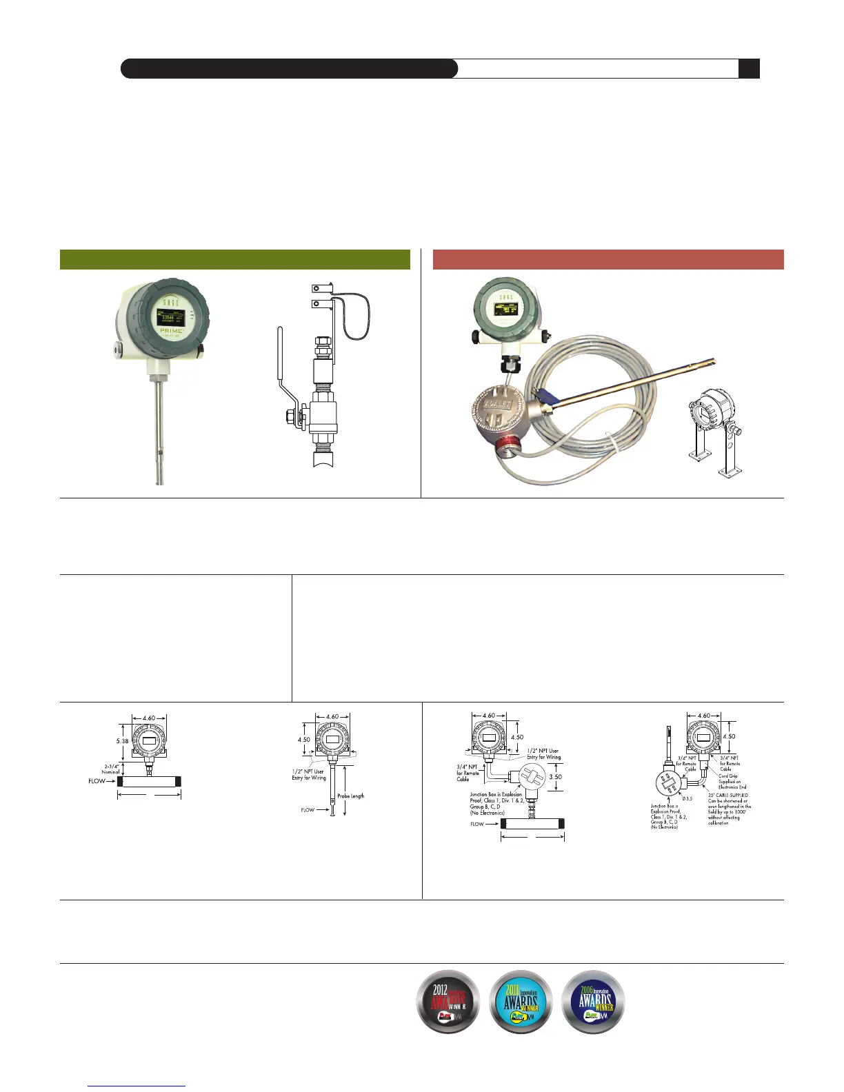 The Flow Element’s Junction Box is Explosion Proof (Class 1, Div 1, Groups B, C, D), and does not have any electronics – only a wiring terminal