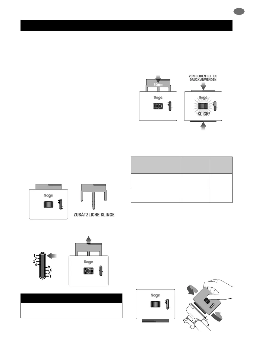 einlegen, bis die Klinge am Siebrand au iegt.