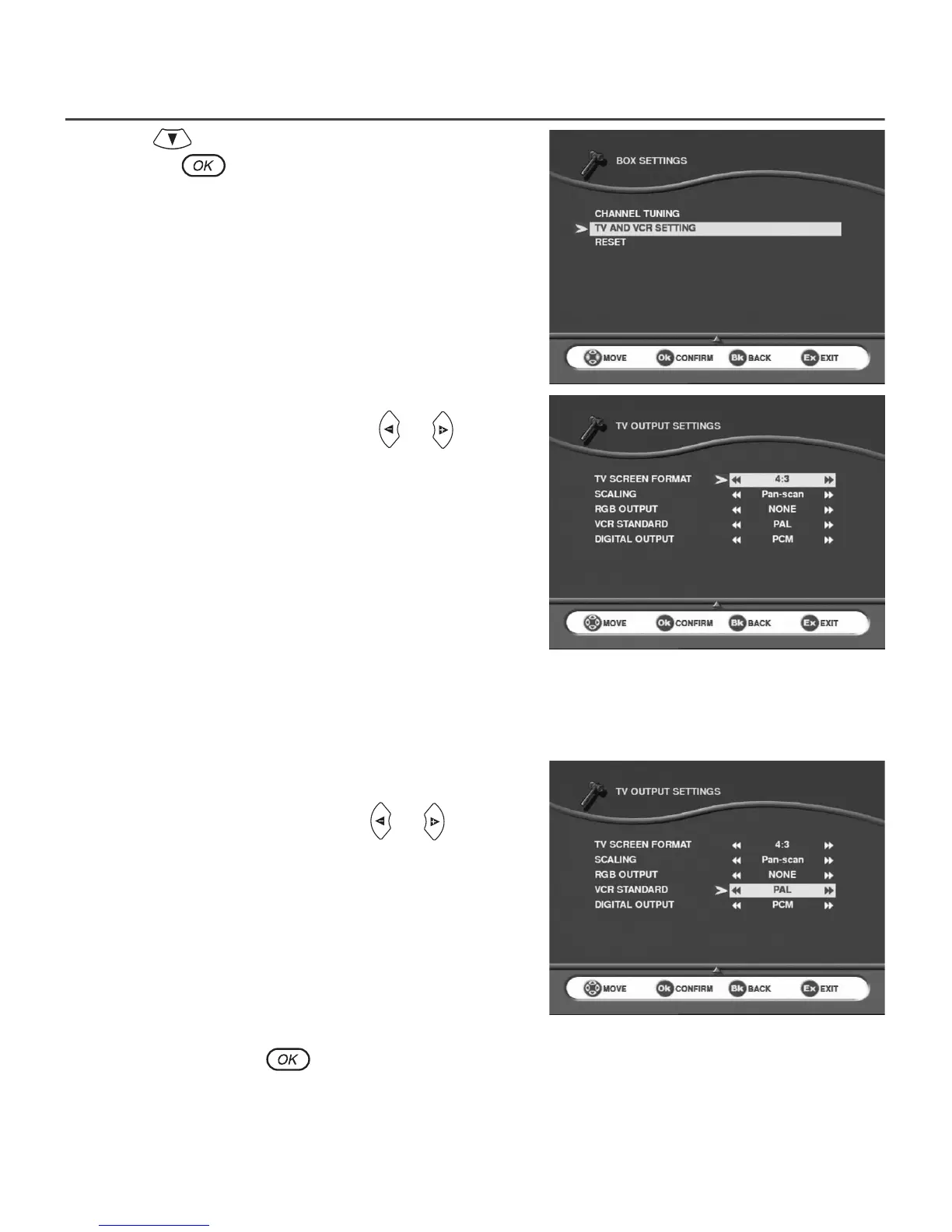 Use cursor to move down to the TV AND VCR SETTING