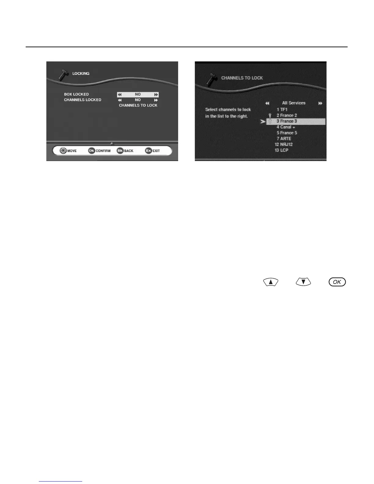 • Select Lock Channels (yes/no) for locking activation. This locks or unlocks all the locked
