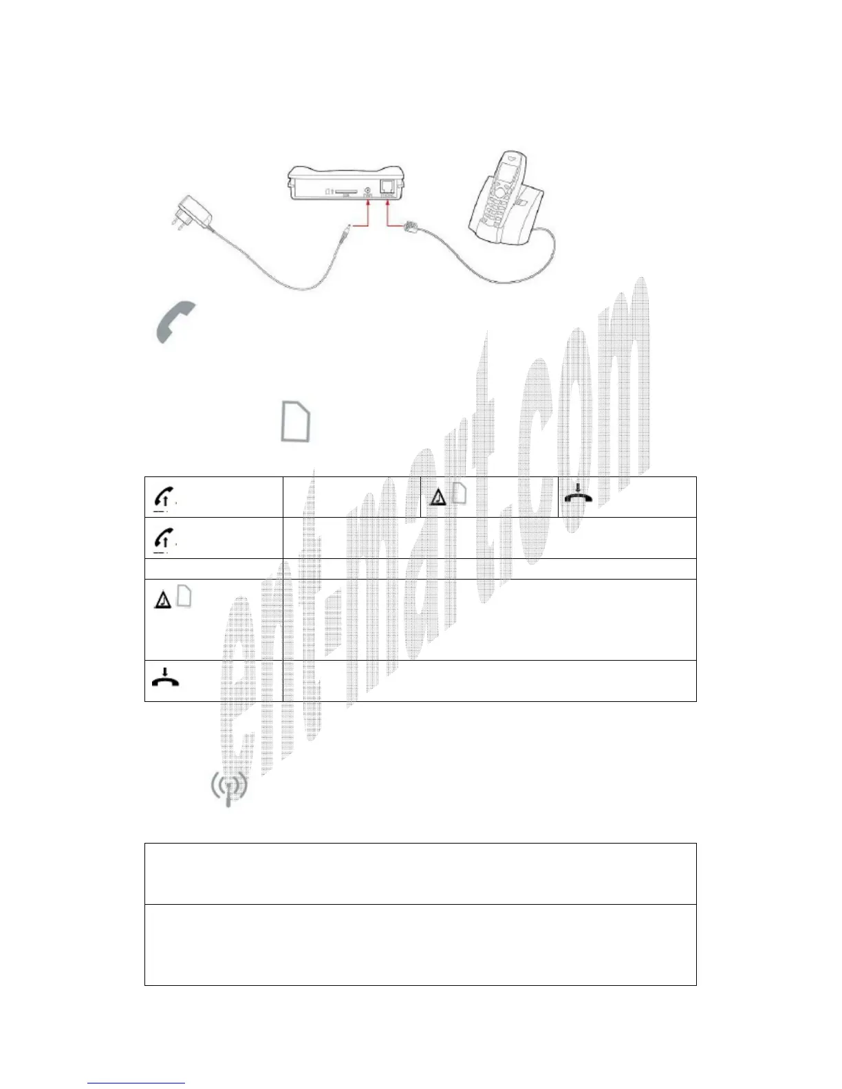 Pin is requested if led is blinking slowly and dial tone is high with interruptions