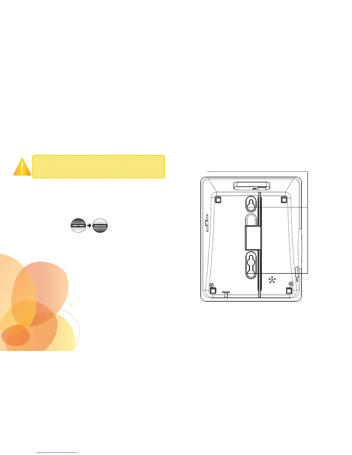 • Hang the phone on the wall, align the wall grip slots with screws in