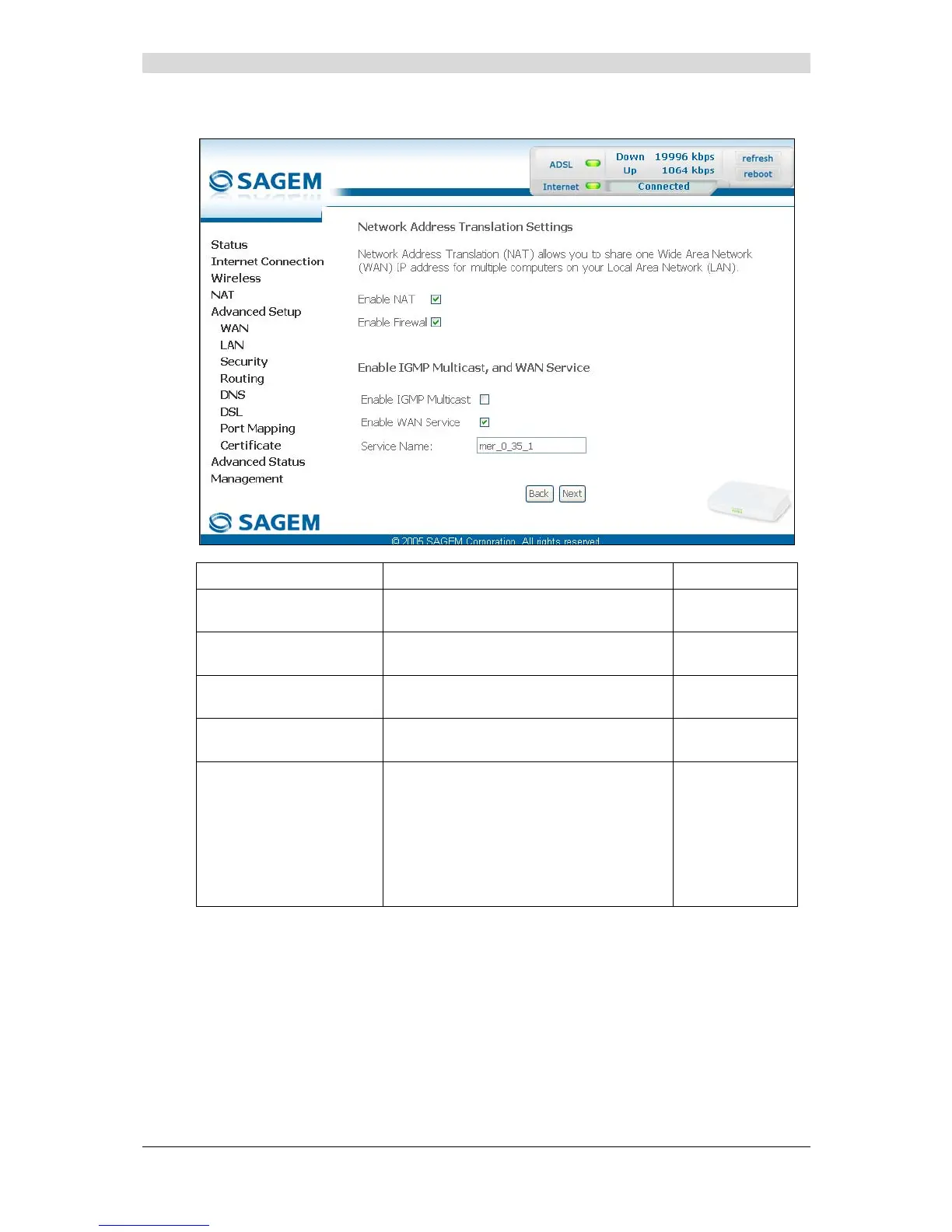 • Click on the Next button to continue configuring the remote network (WAN) in MER mode.