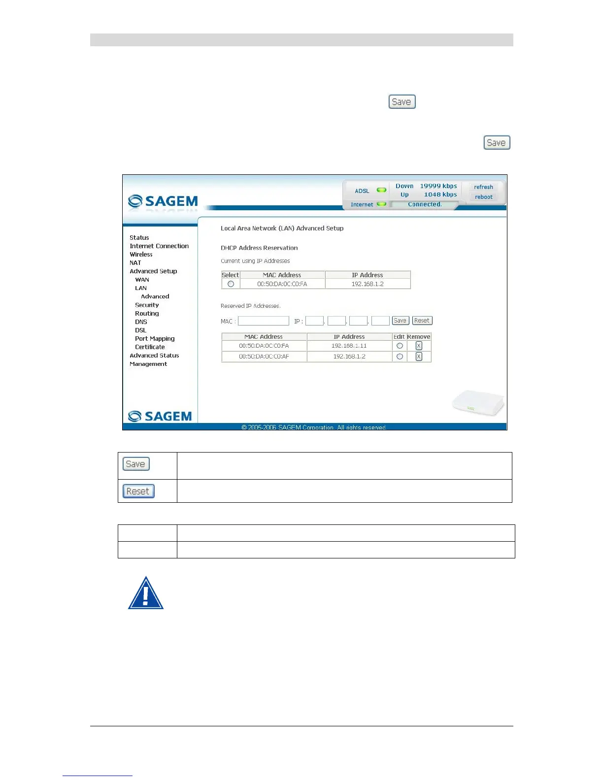 fields of the "Reserved IP Addresses" area then click on the