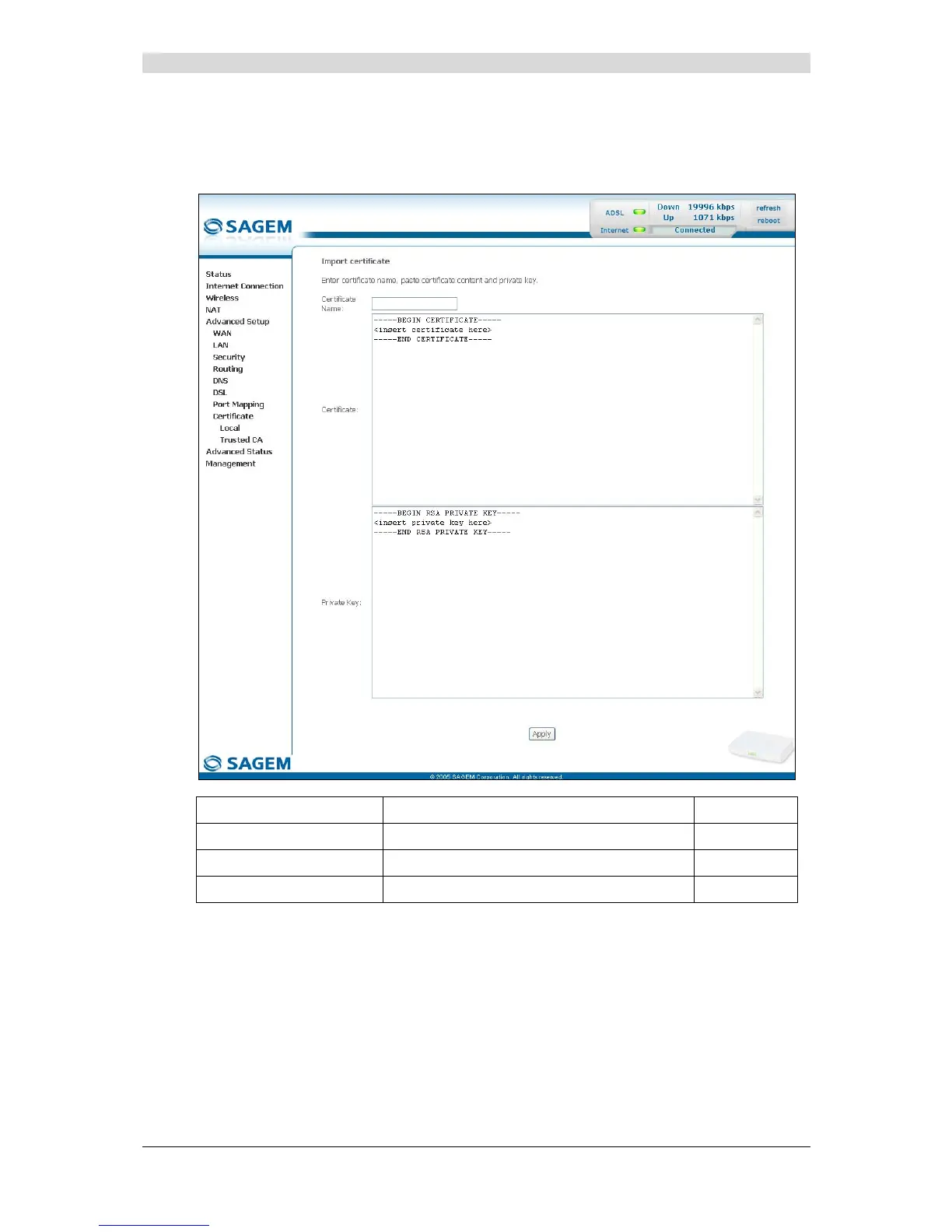 • Click on the Import Certificate button to display the following screen: