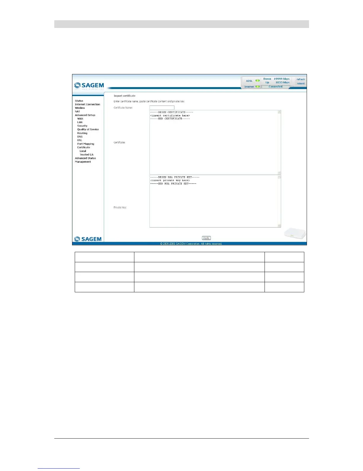 • Click on the Import Certificate button to display the following screen: