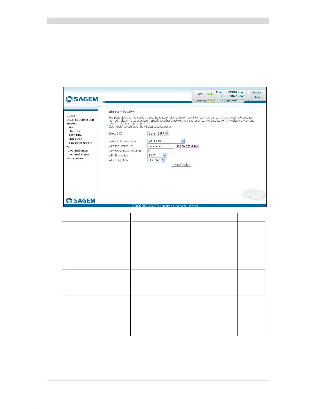 • Select the "WPA-PSK" security from the scroll down list; the following screen appears: